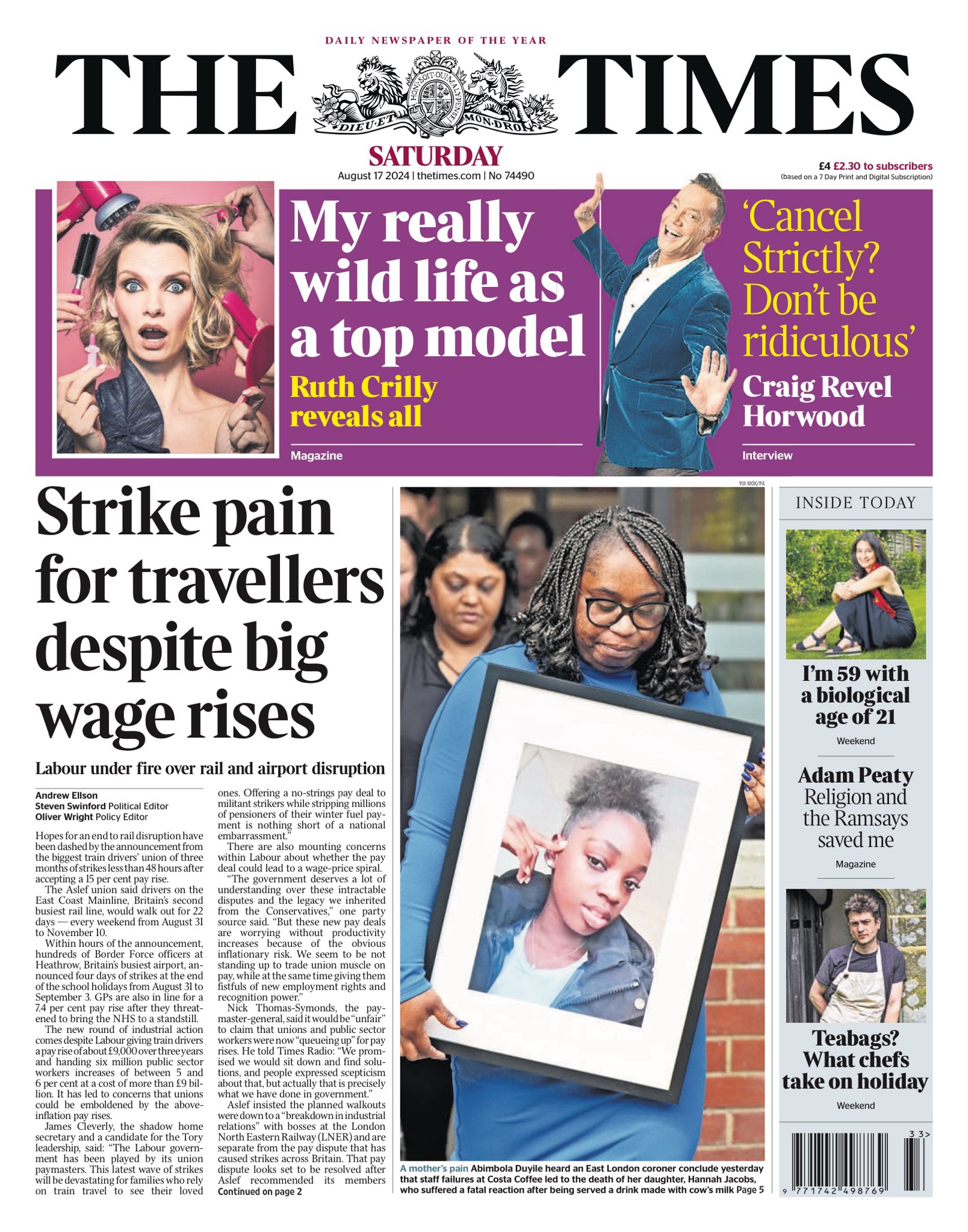 Labour is under criticism due to continued rail and airport disruption despite significant wage increases for workers, with strikes set to affect major routes every weekend from August to November.