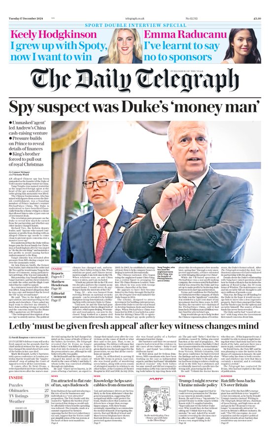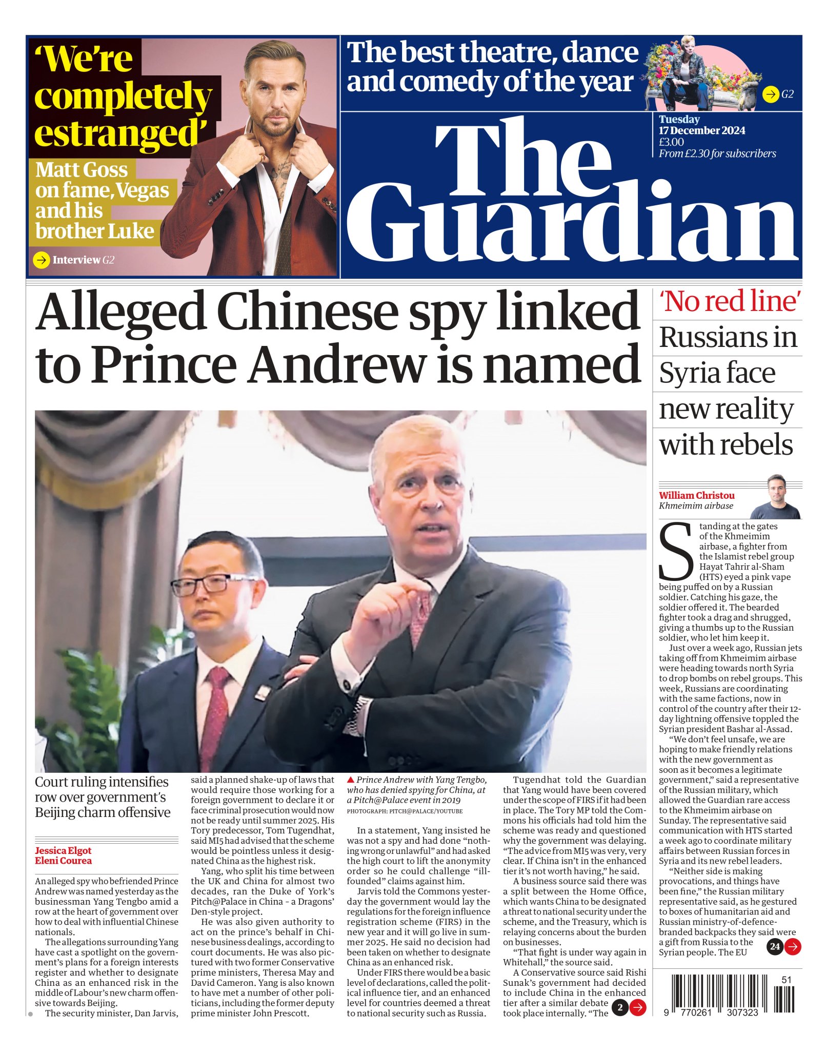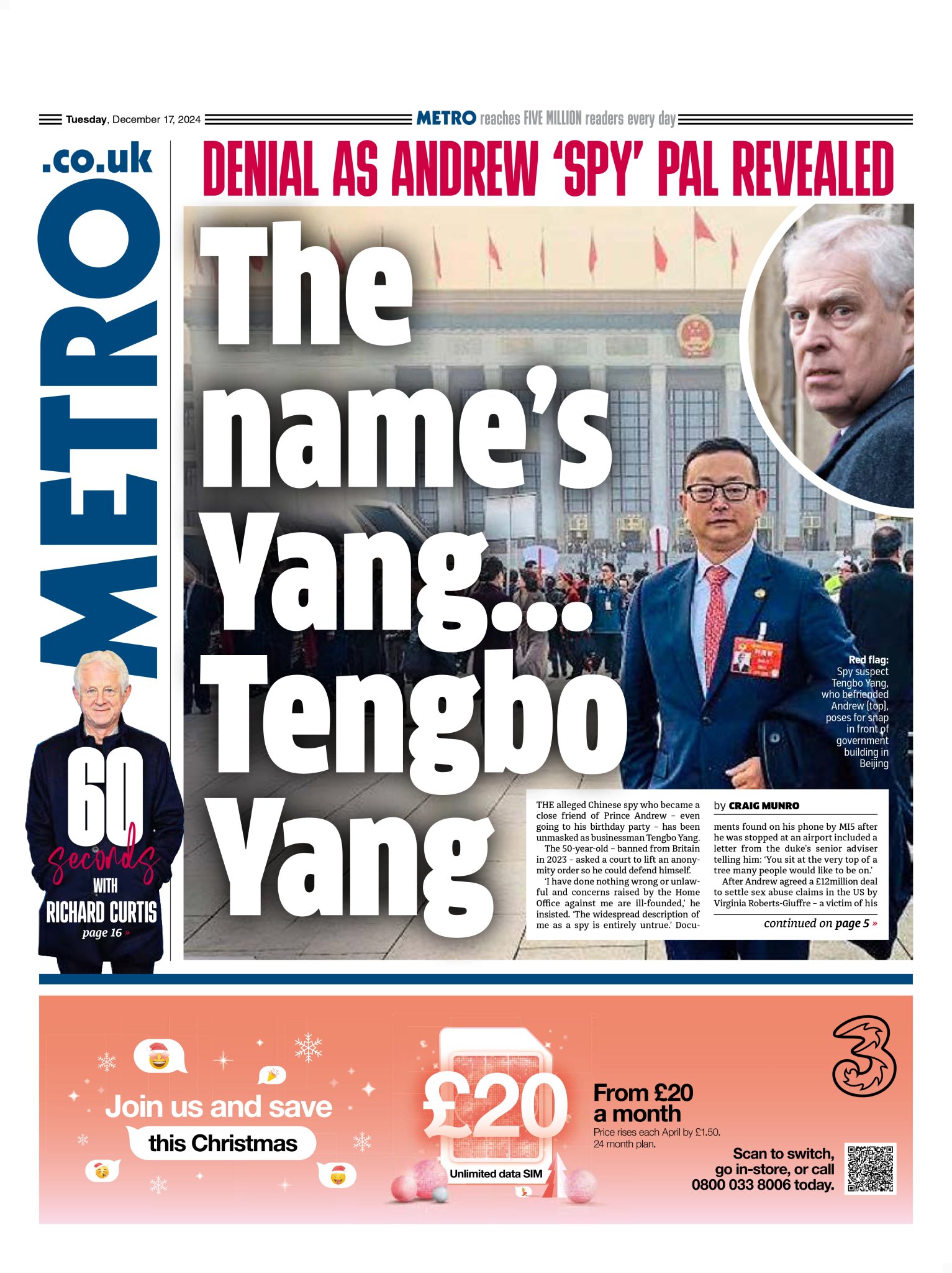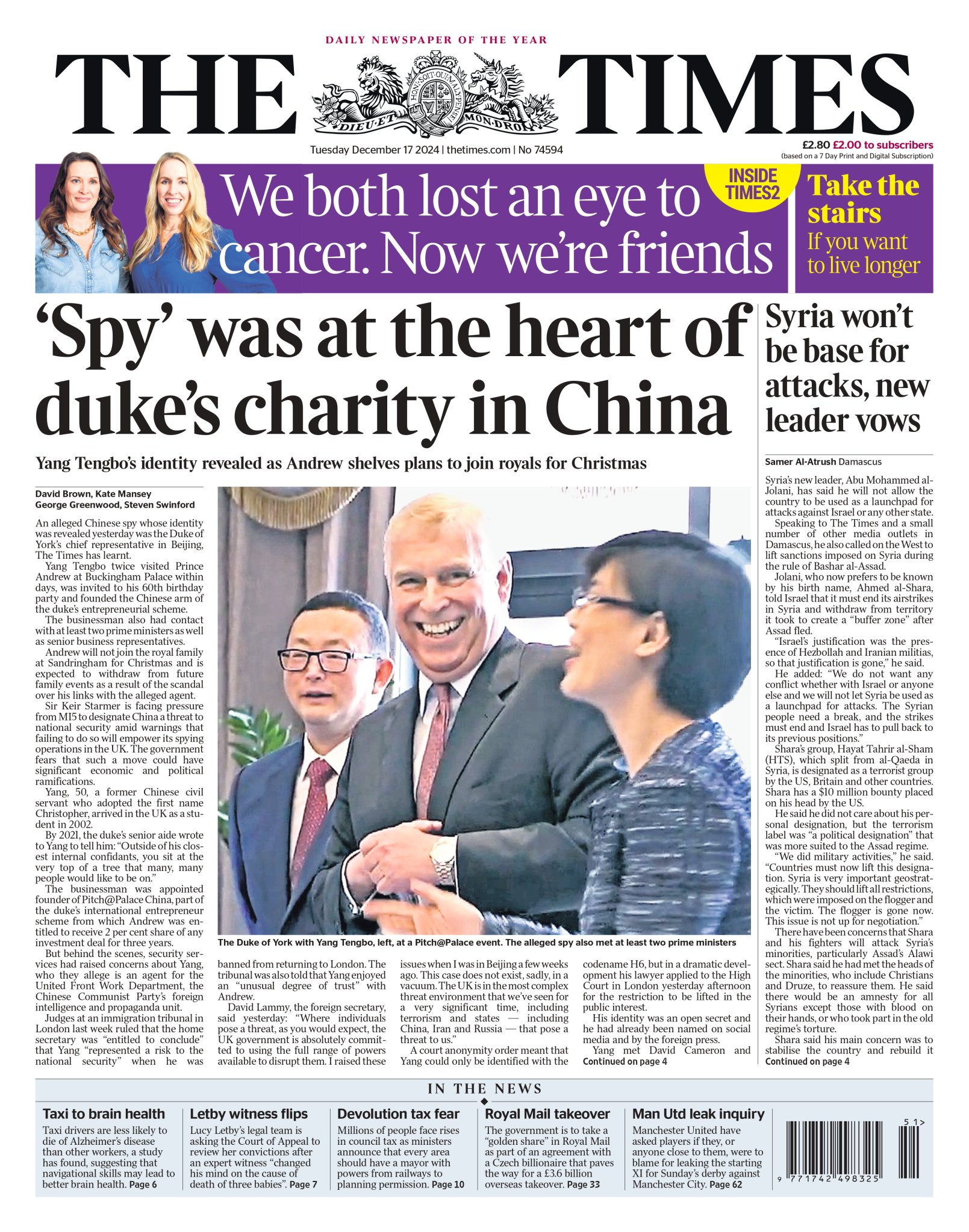 Yang Tengbo, an alleged Chinese spy, was reportedly involved with a charity in Beijing associated with the Duke of York, leading to concerns about espionage and national security threats, as Prince Andrew cancels plans to join the royal family for Christmas amid the unfolding situation.