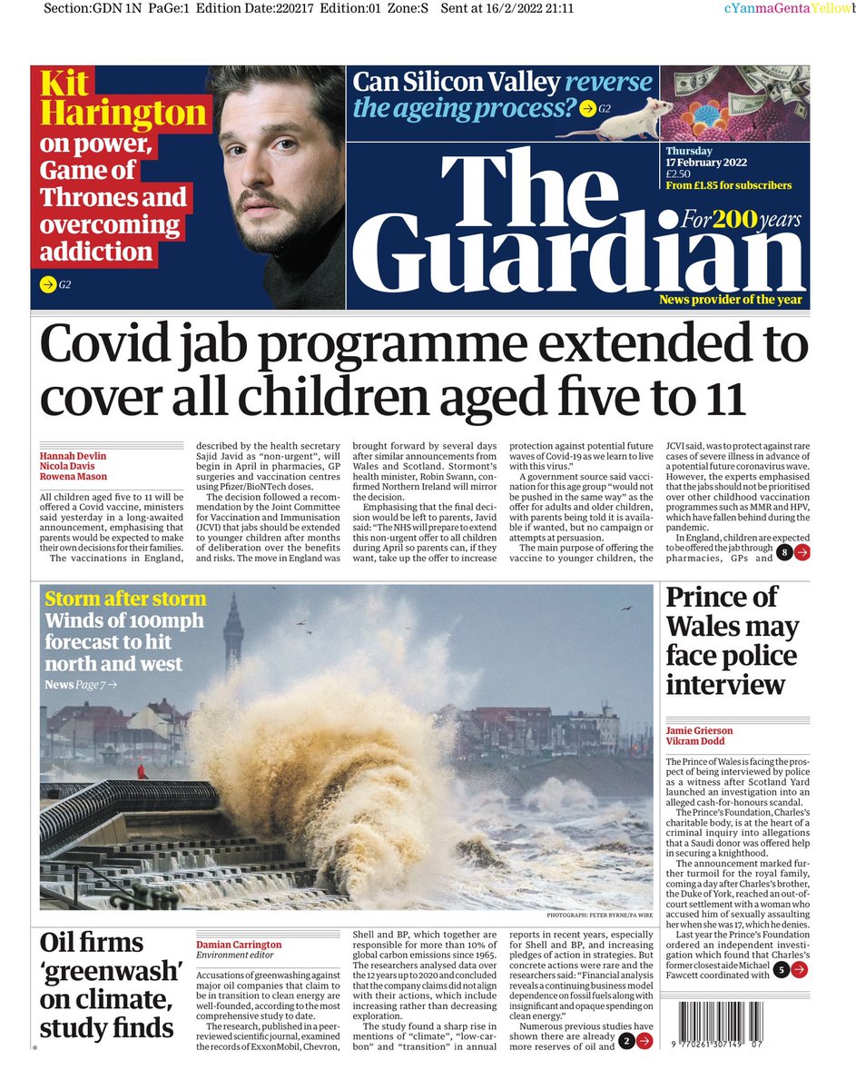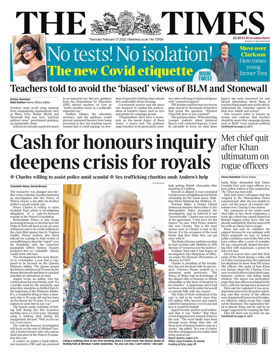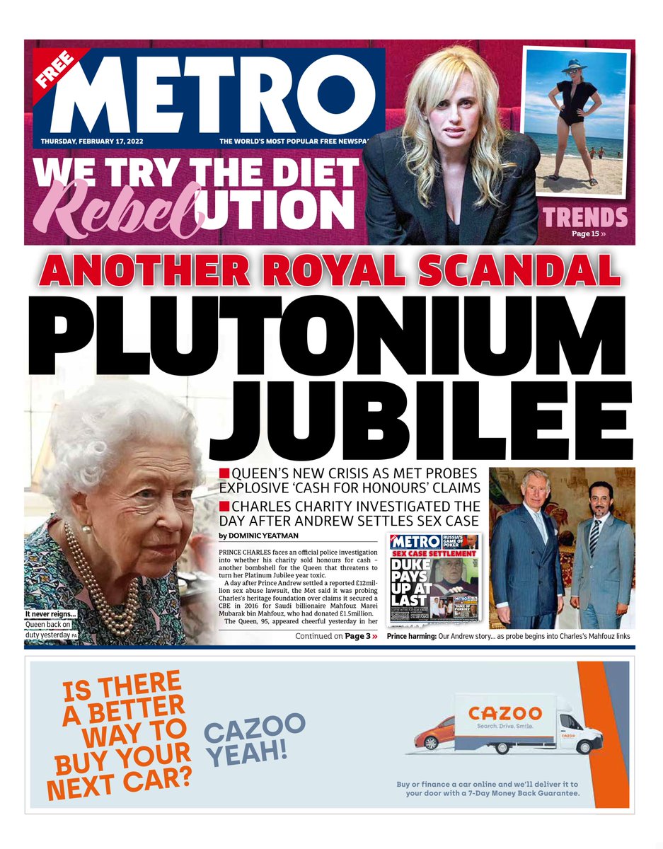 The Daily Express also leads on the news that the Prince of Wales’s charity is facing a police probe.