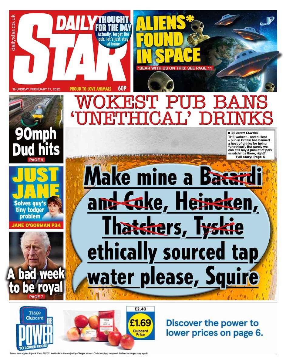 A pub in Britain has banned a host of drinks for being “unethical”, the Daily Star writes.