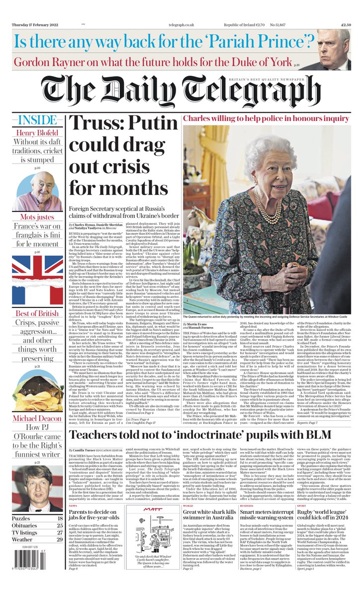 Foreign Secretary Liz Truss has told The Daily Telegraph that Russia is preparing to “test the mettle” of the West by dragging out the Ukraine crisis for months as she warned against being lulled into a “false sense of security” over Putin’s claims of troop withdrawal.