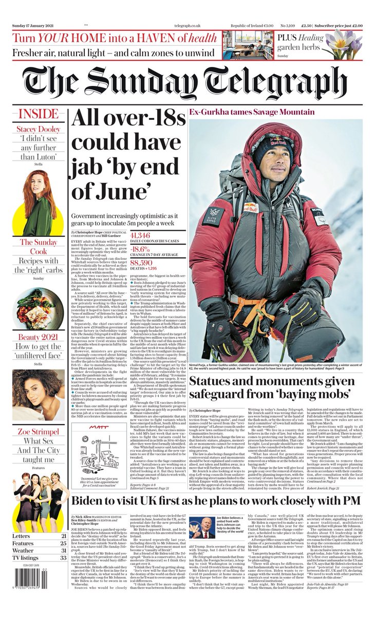 All adults in Britain could have the coronavirus vaccination by the end of June, according to The Sunday Telegraph.