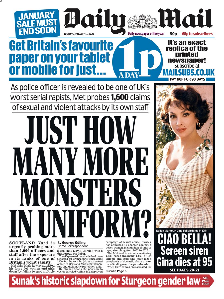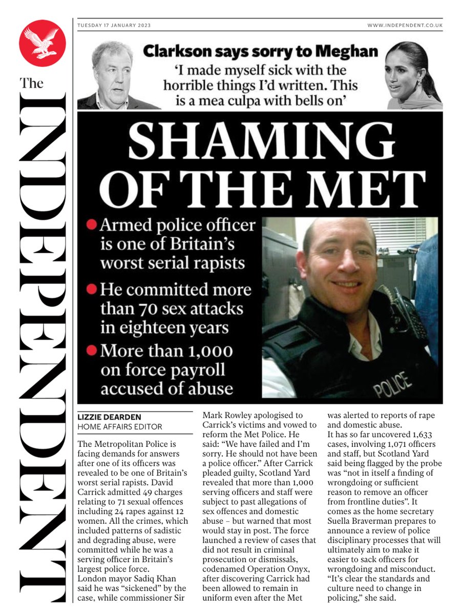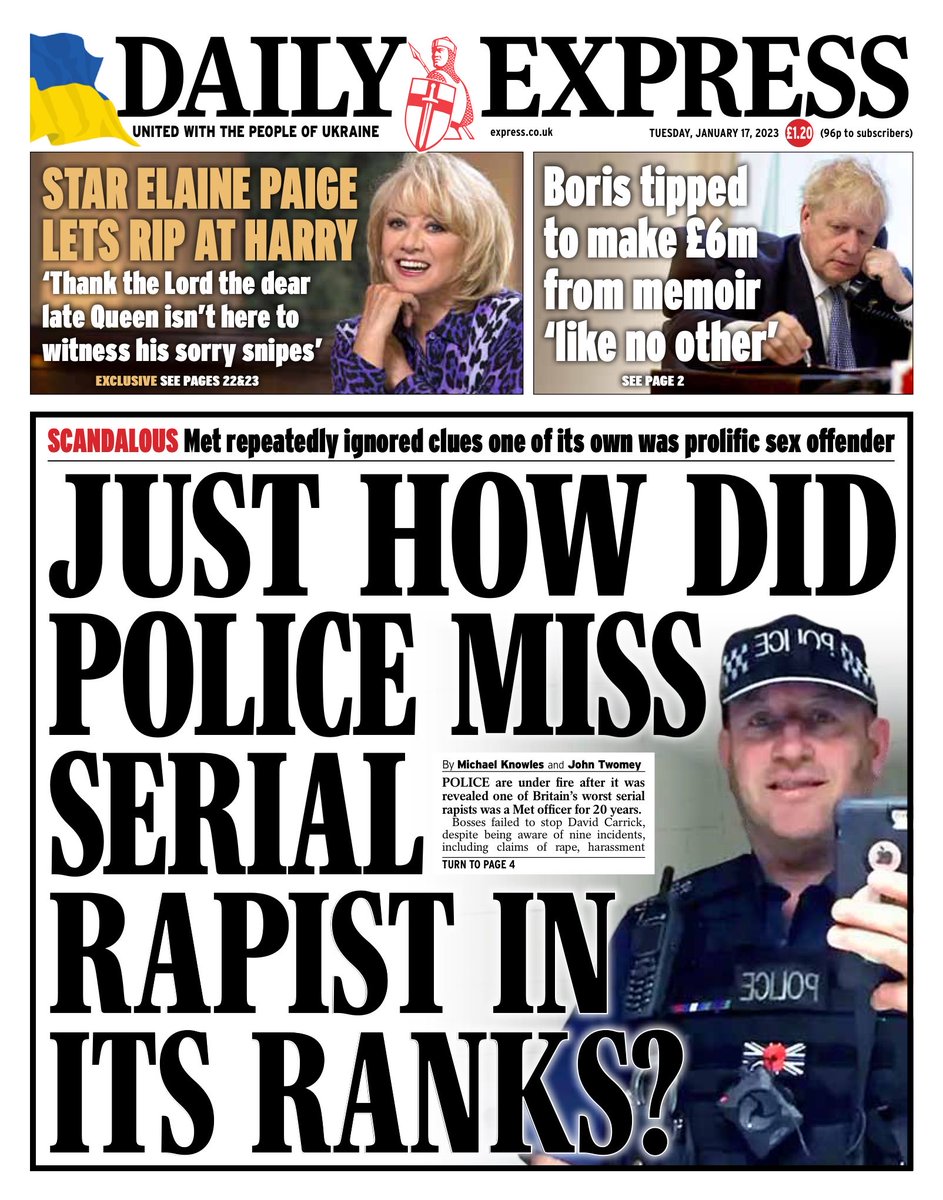 The Daily Mirror reports that police had nine chances to stop a serial rapist working at the Met.
