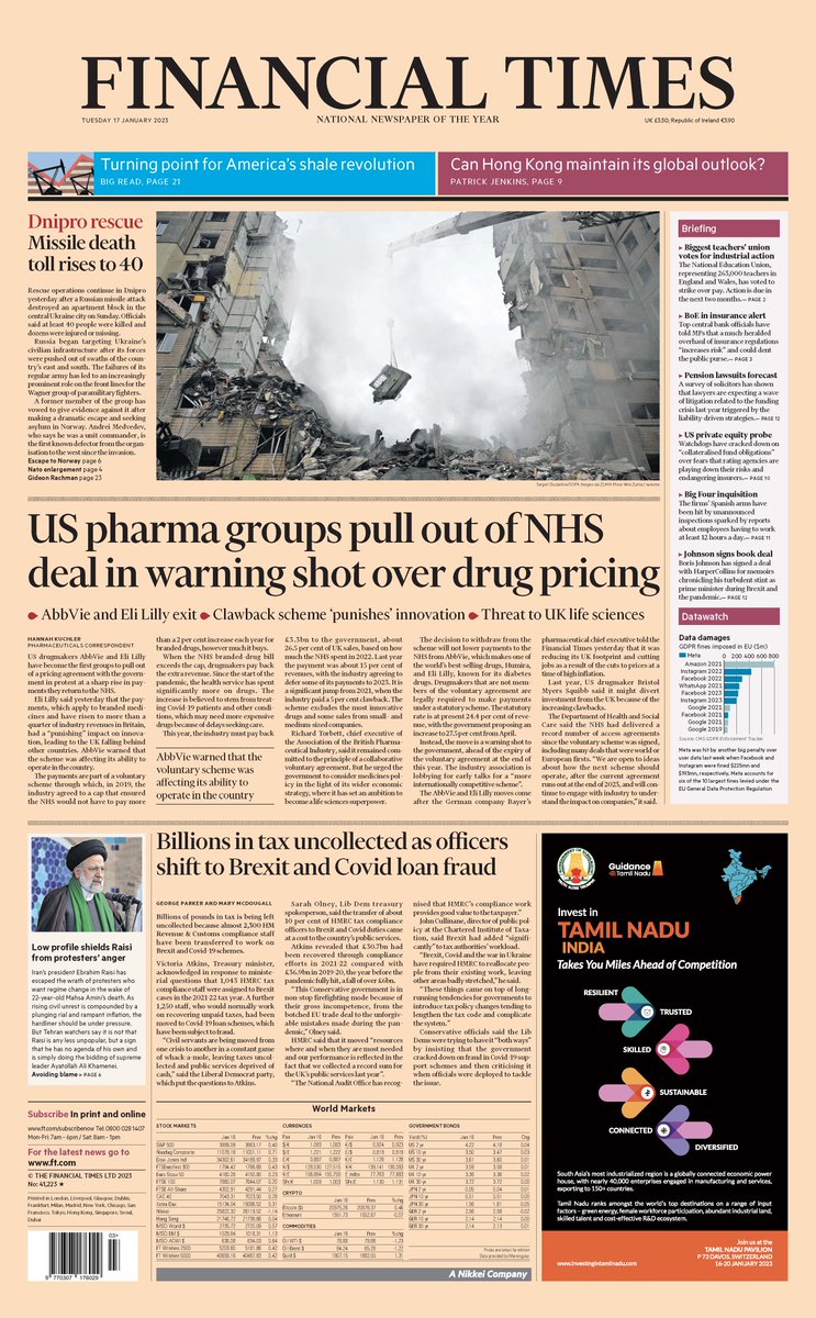 In protest at a “sharp rise in payments they return to the NHS”, US drugmakers AbbVie and Eli Lilly have pulled out of a pricing agreement with the government, the Financial Times reports.