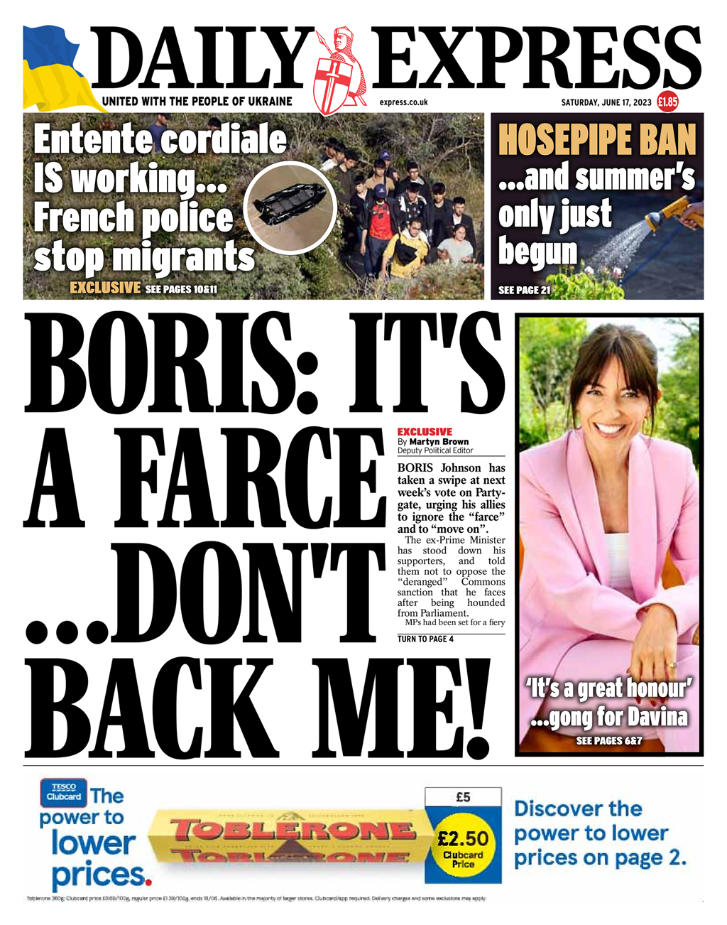 The Daily Express reports that Boris Johnson has urged his supporters to accept the Partygate report and move forward.