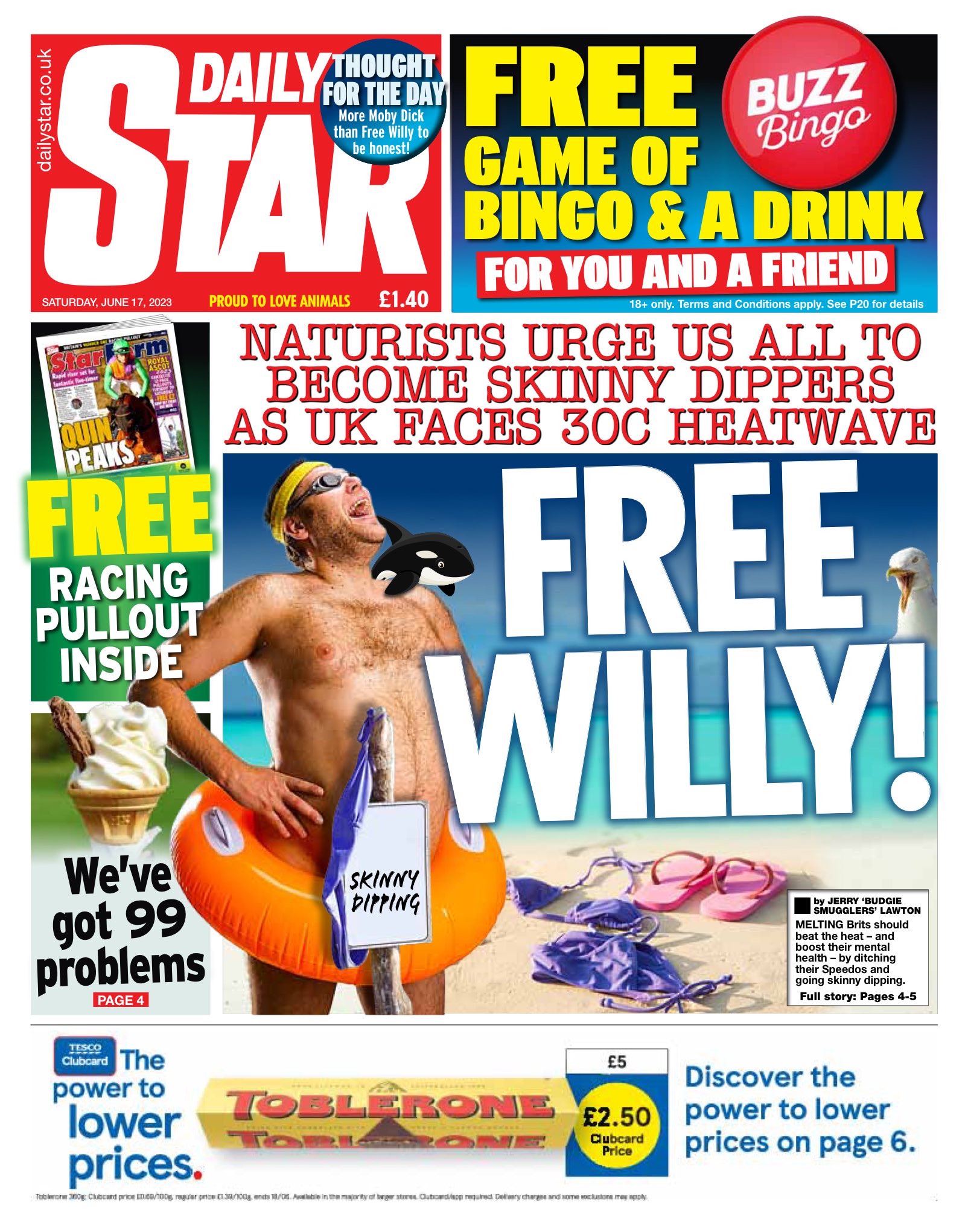 The Daily Star’s front page encourages more people to try skinny dipping in the sea.