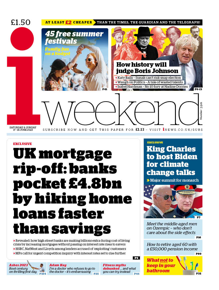 The i Weekend alleges that banks are profiting from increased mortgage rates while savers are not benefiting from interest rate hikes.