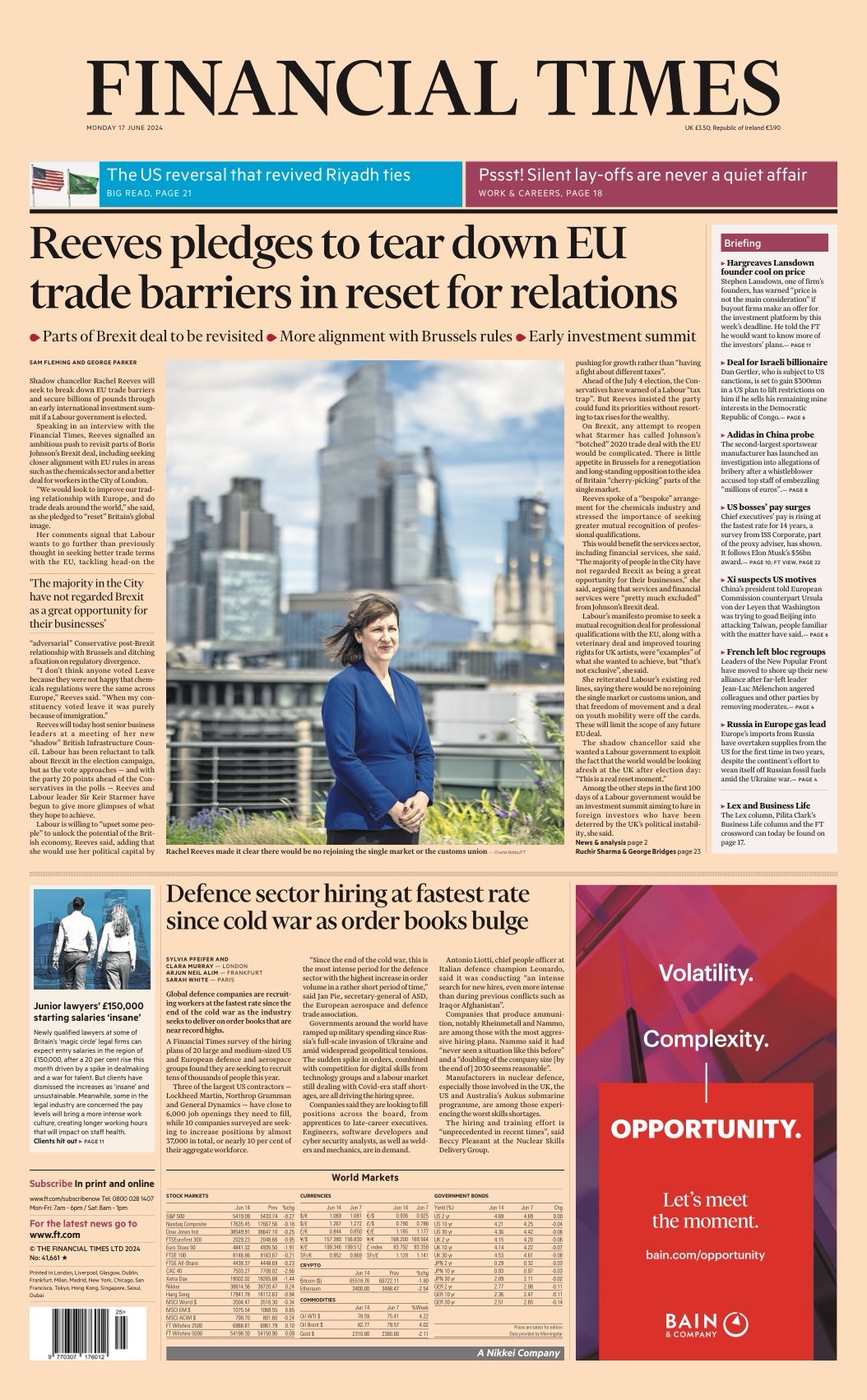Shadow chancellor Rachel Reeves has announced plans to dismantle post-Brexit EU trade barriers and align more closely with Brussels’ rules to reset UK-European relations and boost investment.