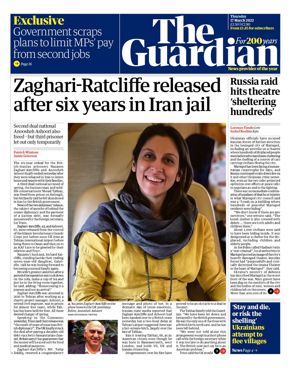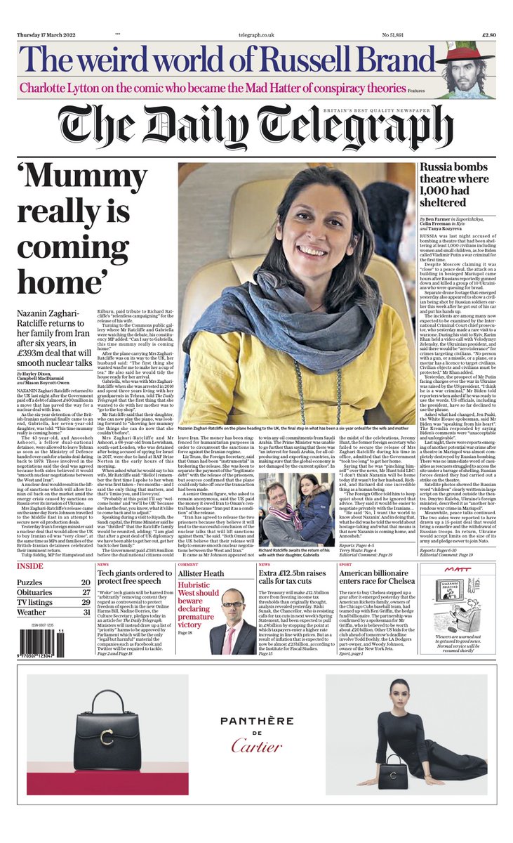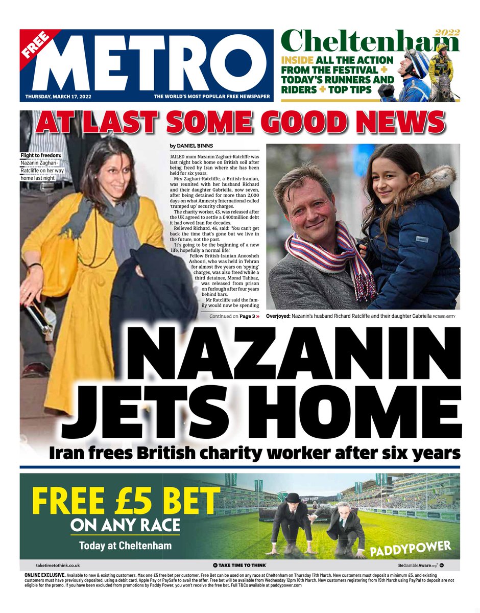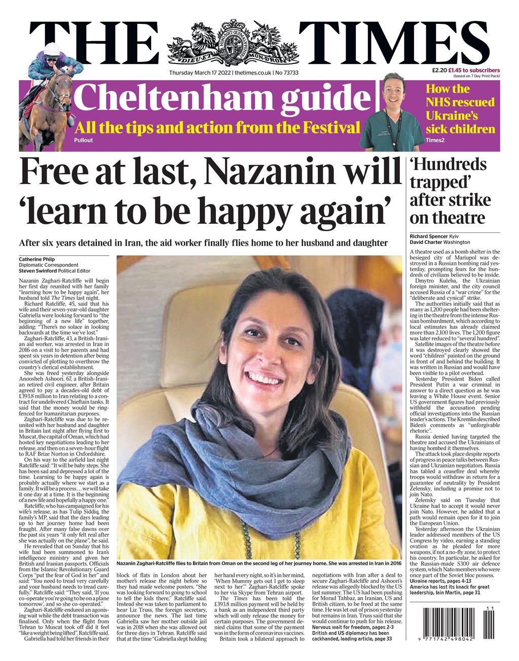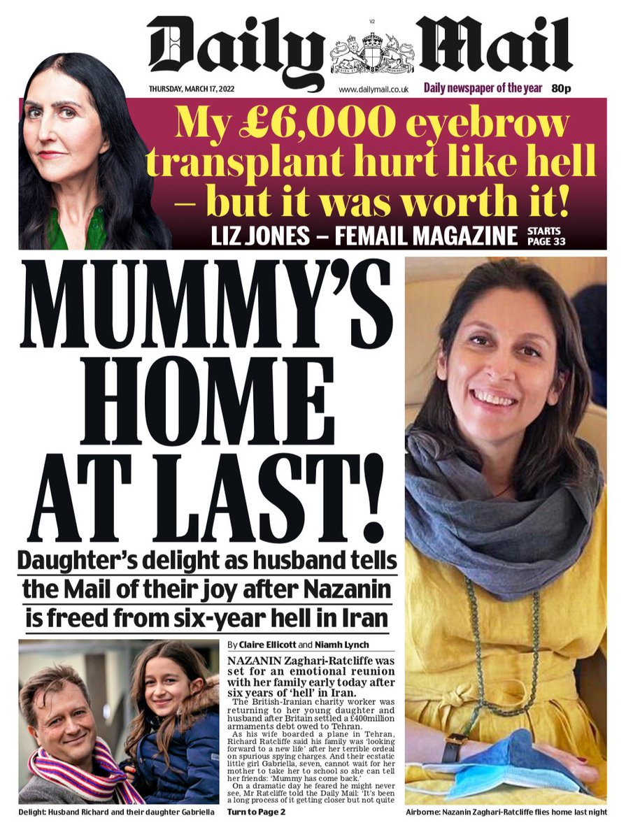 husband after Britain settled a £400m armaments debt owed to Tehran, writes the Daily Mail.