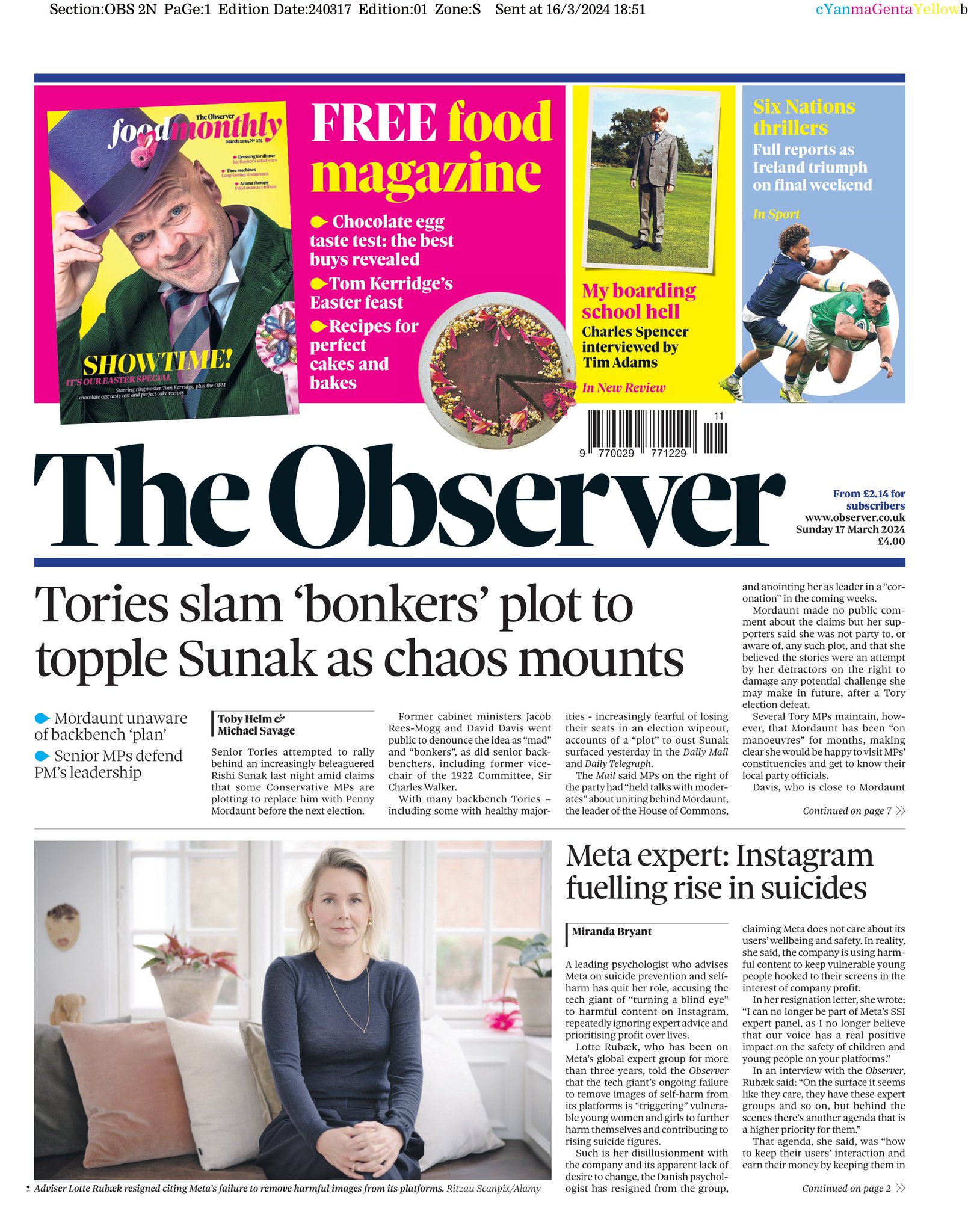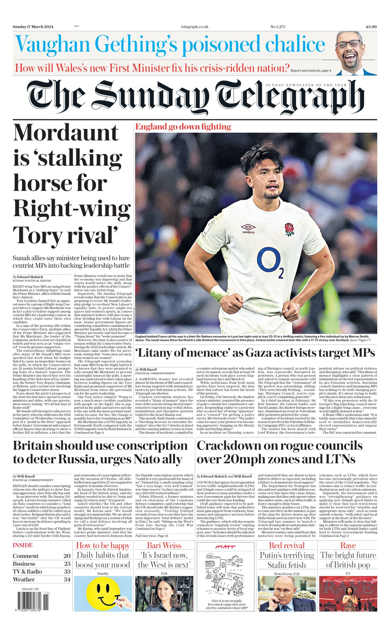 Sunday Telegraph Front Page 17th of March 2024