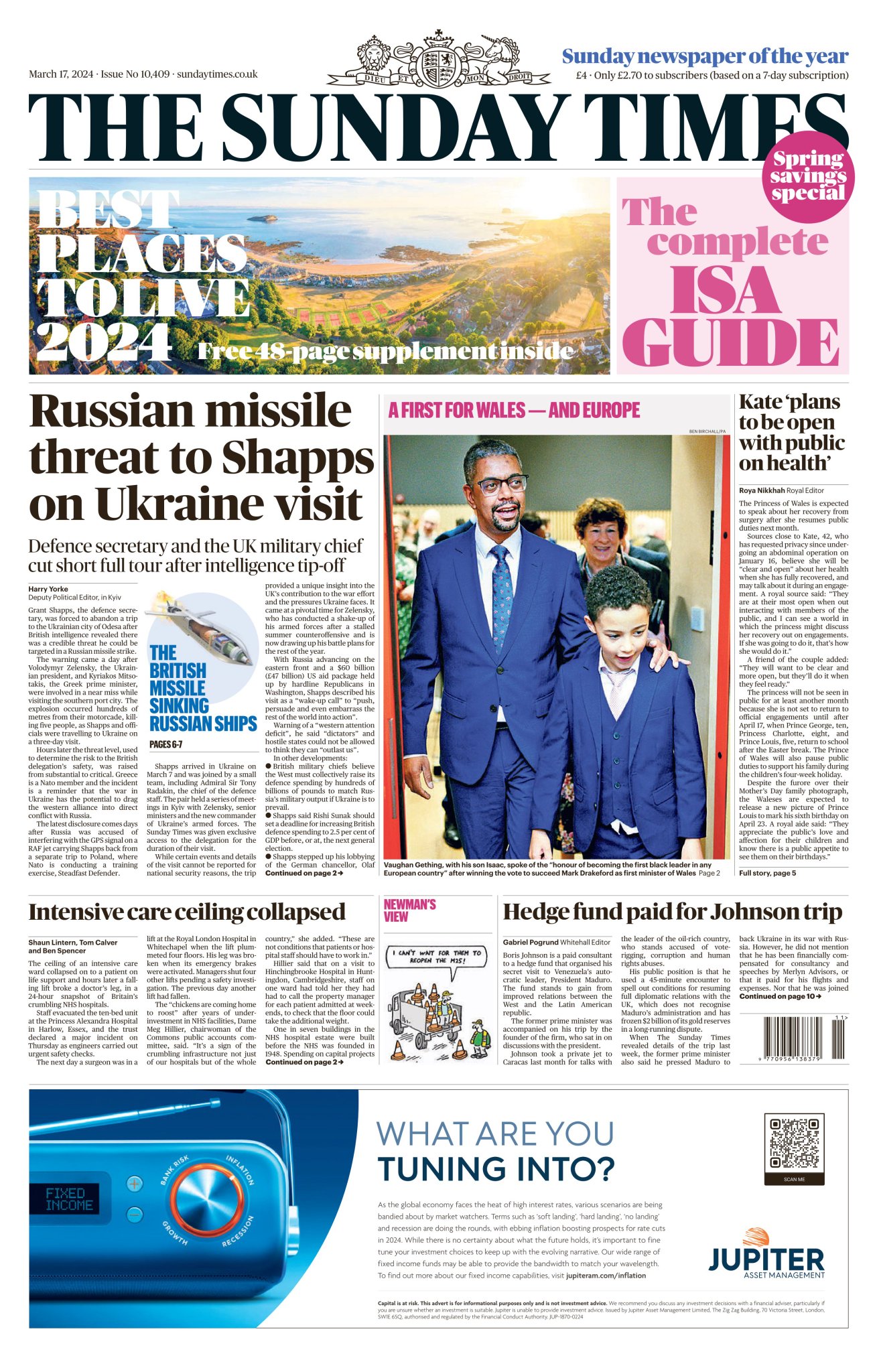 The Sunday Times reports on the UK’s Defence Secretary, Grant Shapps, cancelling his Ukraine trip due to a credible missile threat.