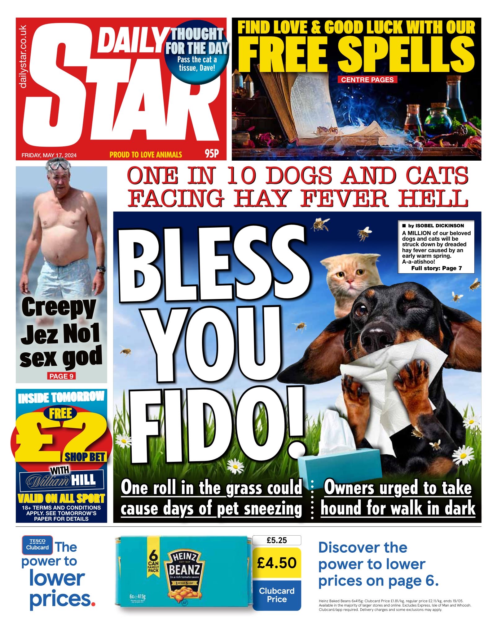 The Daily Star reports that an early warm spring may cause hay fever in a million dogs and cats.