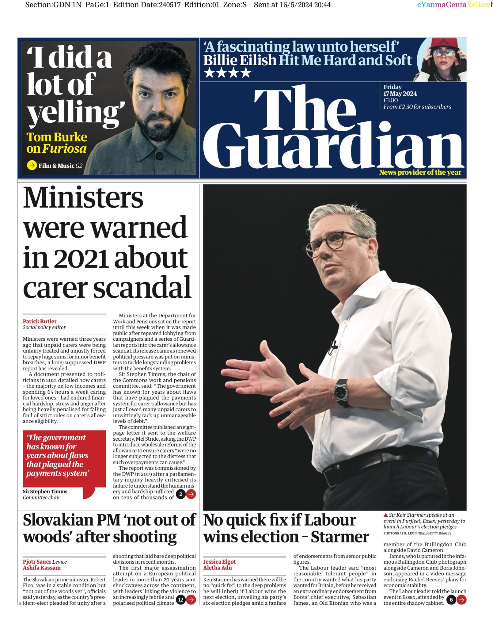 Times Front Page 17th of May 2024