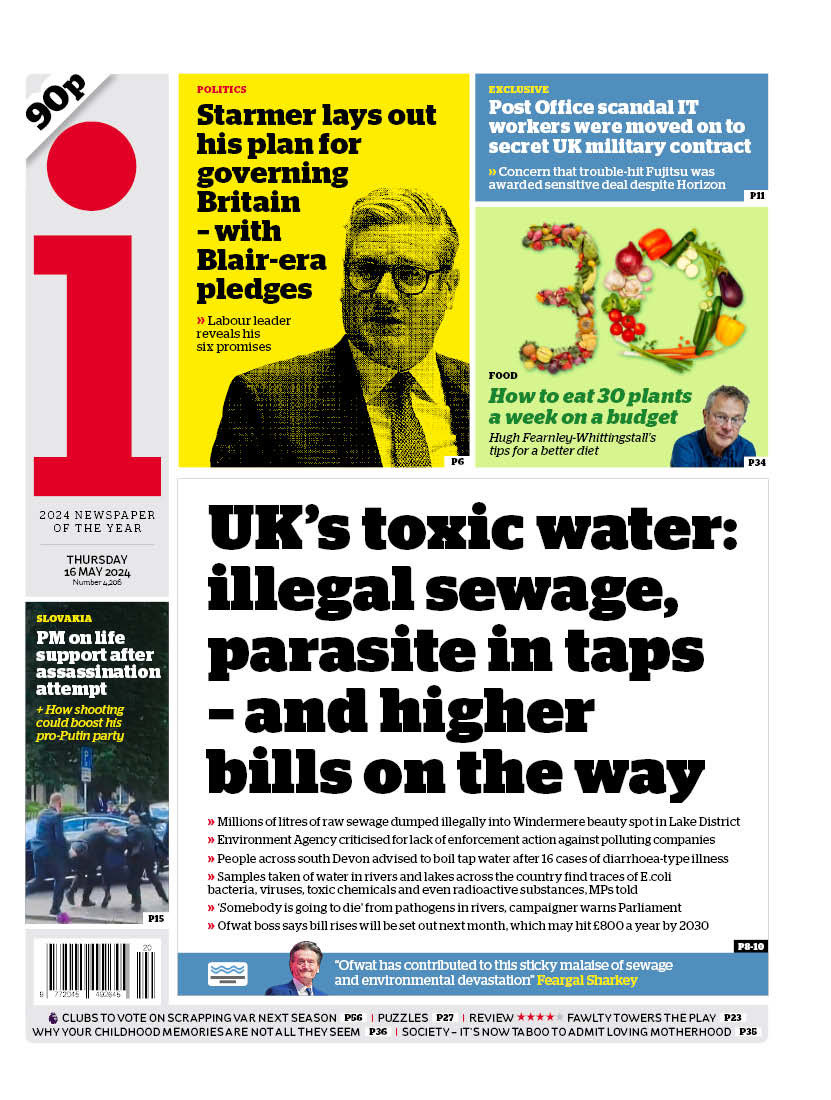 The i reveals a 54% rise in sewage discharge into UK rivers by water firms in 2023.