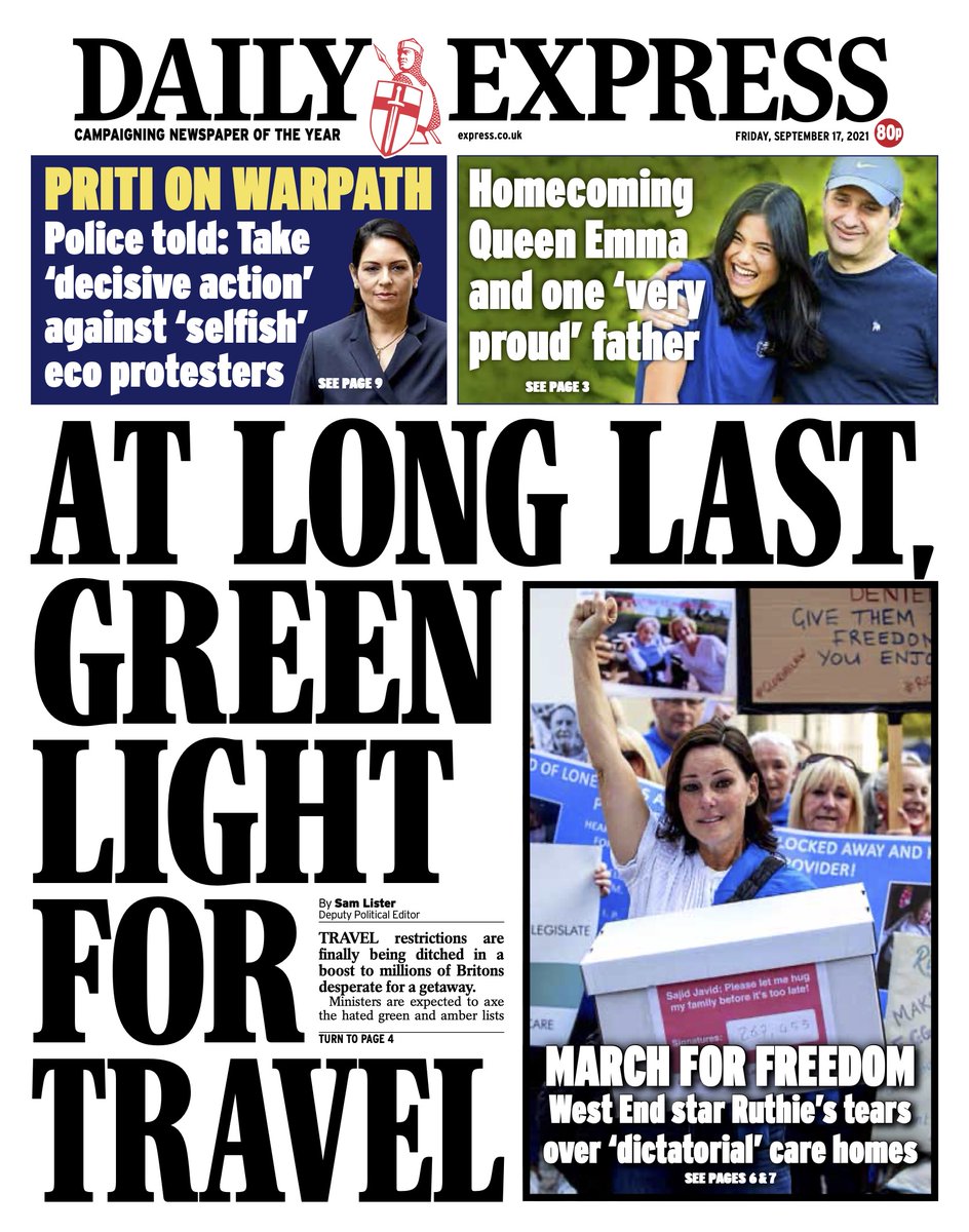 The Daily Express expects ministers to scrap green and amber lists for British travellers in favour of one “no-go” category for the world’s worst-hit COVID hotspots.