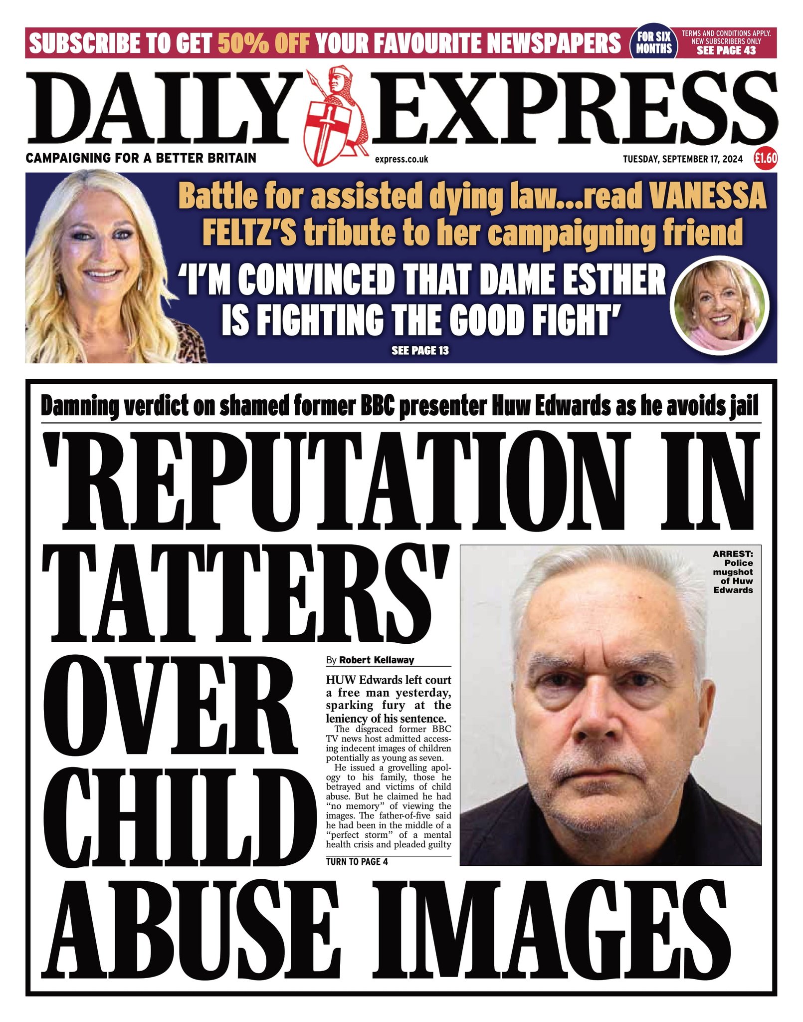 Former newsreader Huw Edwards has been placed on the sex offender register and avoided jail after being found to have paid a paedophile for indecent images of children.