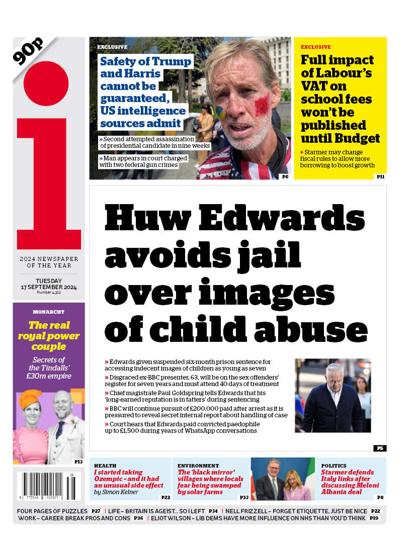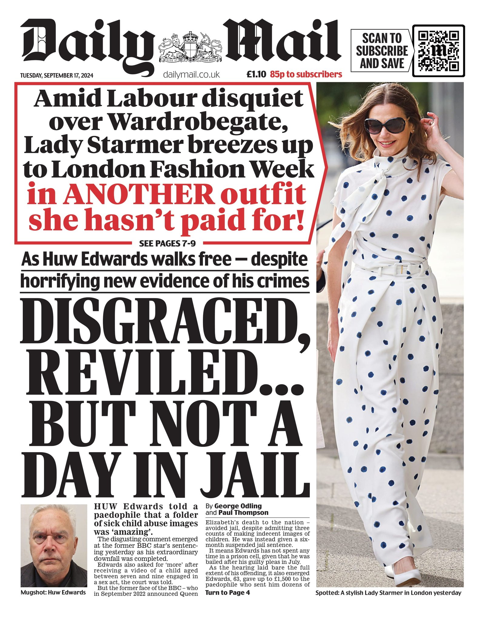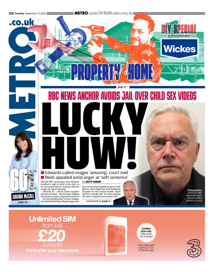 Huw Edwards has been given a suspended six-month prison sentence for accessing indecent images of children as young as seven, will be on the sex offenders’ register for seven years, and must attend 40 days of treatment.