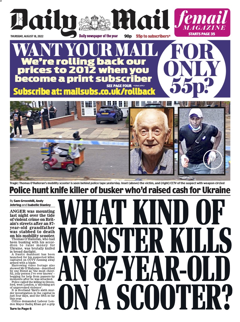 According to the Daily Mail, anger has been rising over the “tide of violent crime on Britain’s streets” following the death of an 87-year-old grandfather.