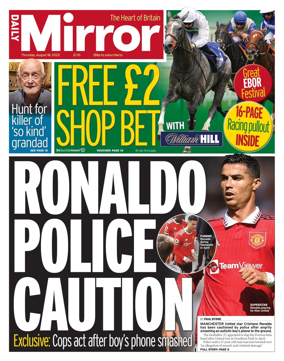 Police caution Manchester United star Cristiano Ronaldo after he smashed an autistic boy’s phone, reports the Daily Mirror.