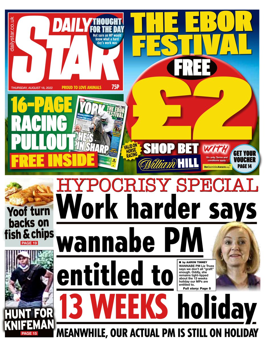 The Daily Star quoted Liz Truss as saying workers aren’t “grafting” enough, adding she’s keeping quiet about the 13 weeks of holiday all MPs are entitled to.