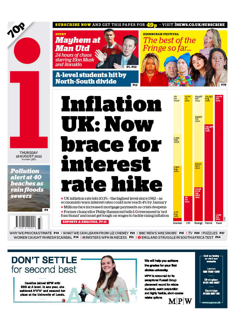 According to the i, the UK’s inflation rate reached 10.1%, its highest level since 1982.