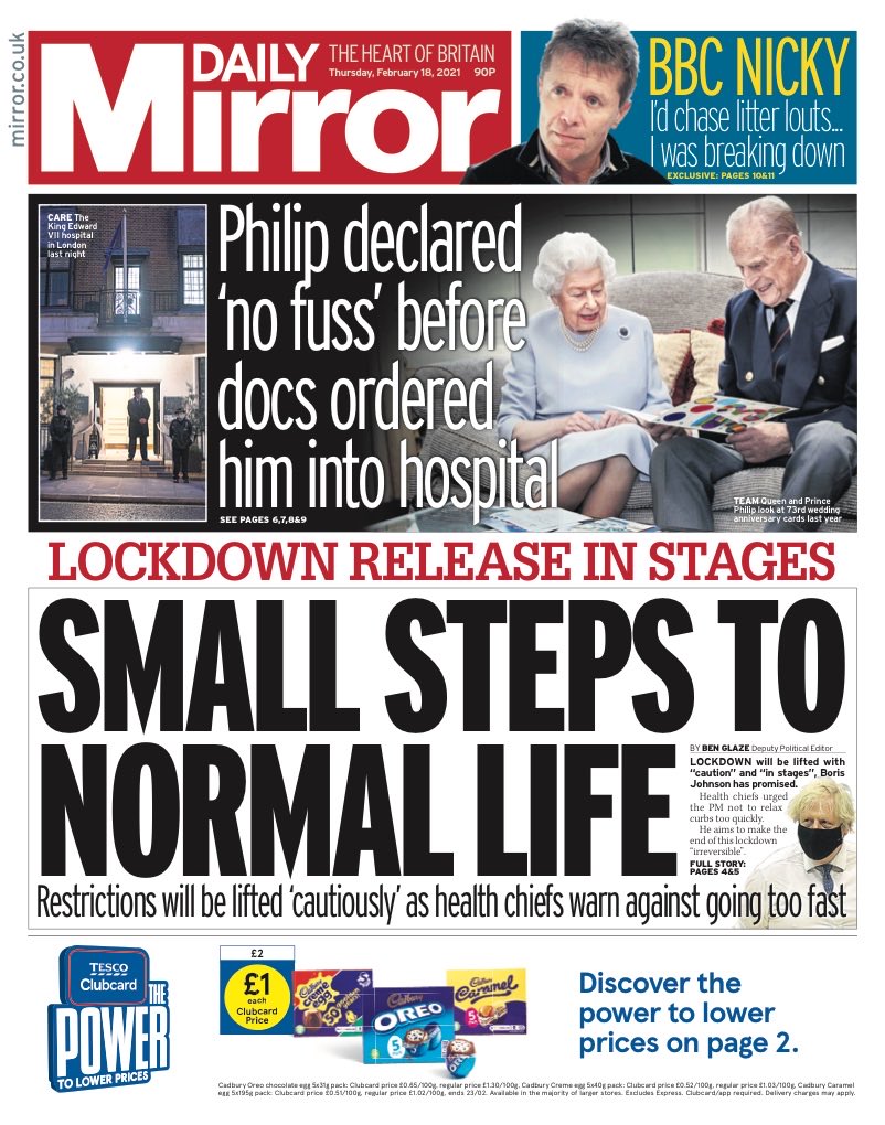 The Daily Mirror leads on the prime minister’s claims that lockdown will be eased “in stages” and “with caution”. You can read the latest on restrictions being eased here.