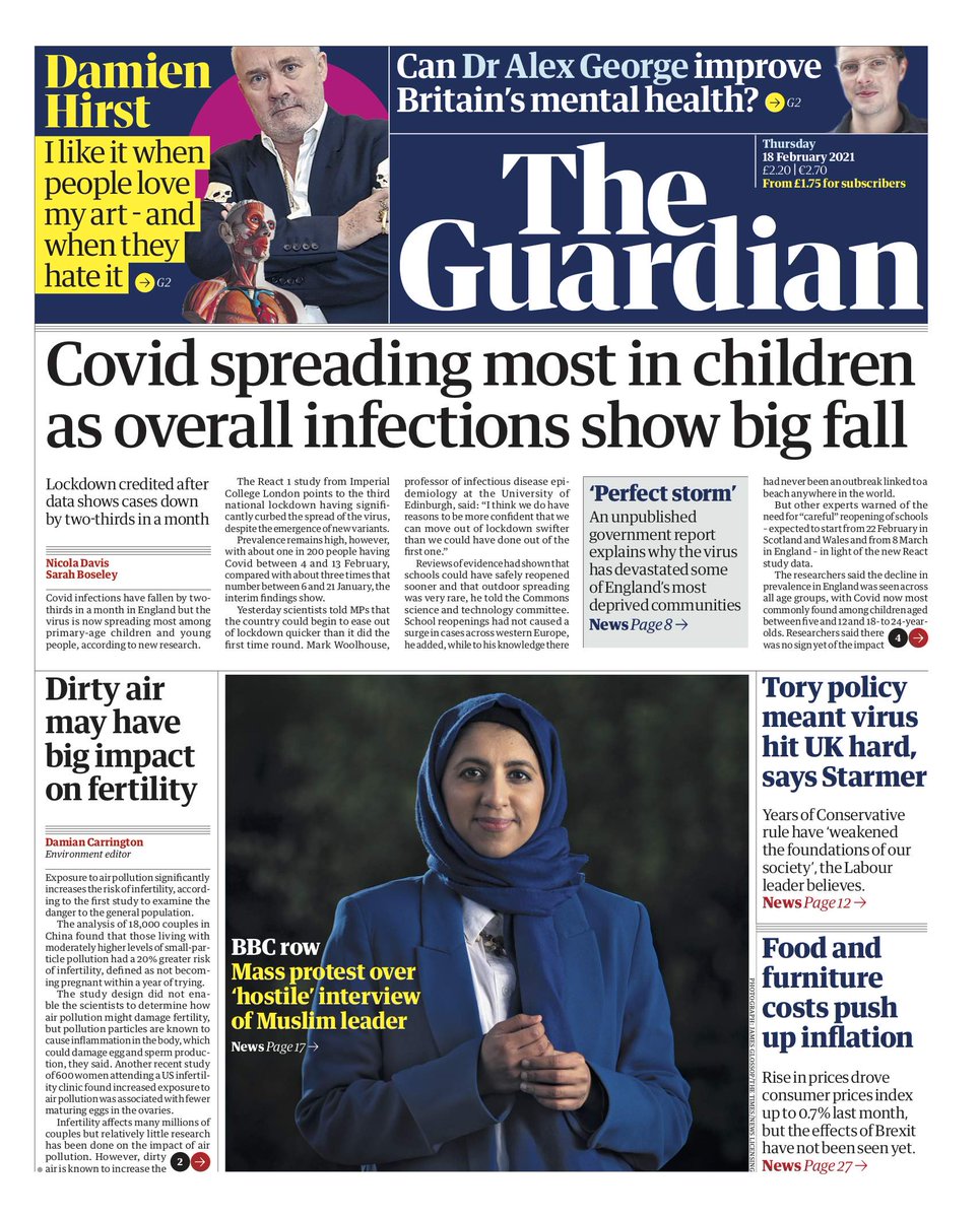The Guardian reports that coronavirus cases in England have fallen by two-thirds in a month, but the virus is now spreading fastest among primary-aged children and young people, according to the latest scientific study.