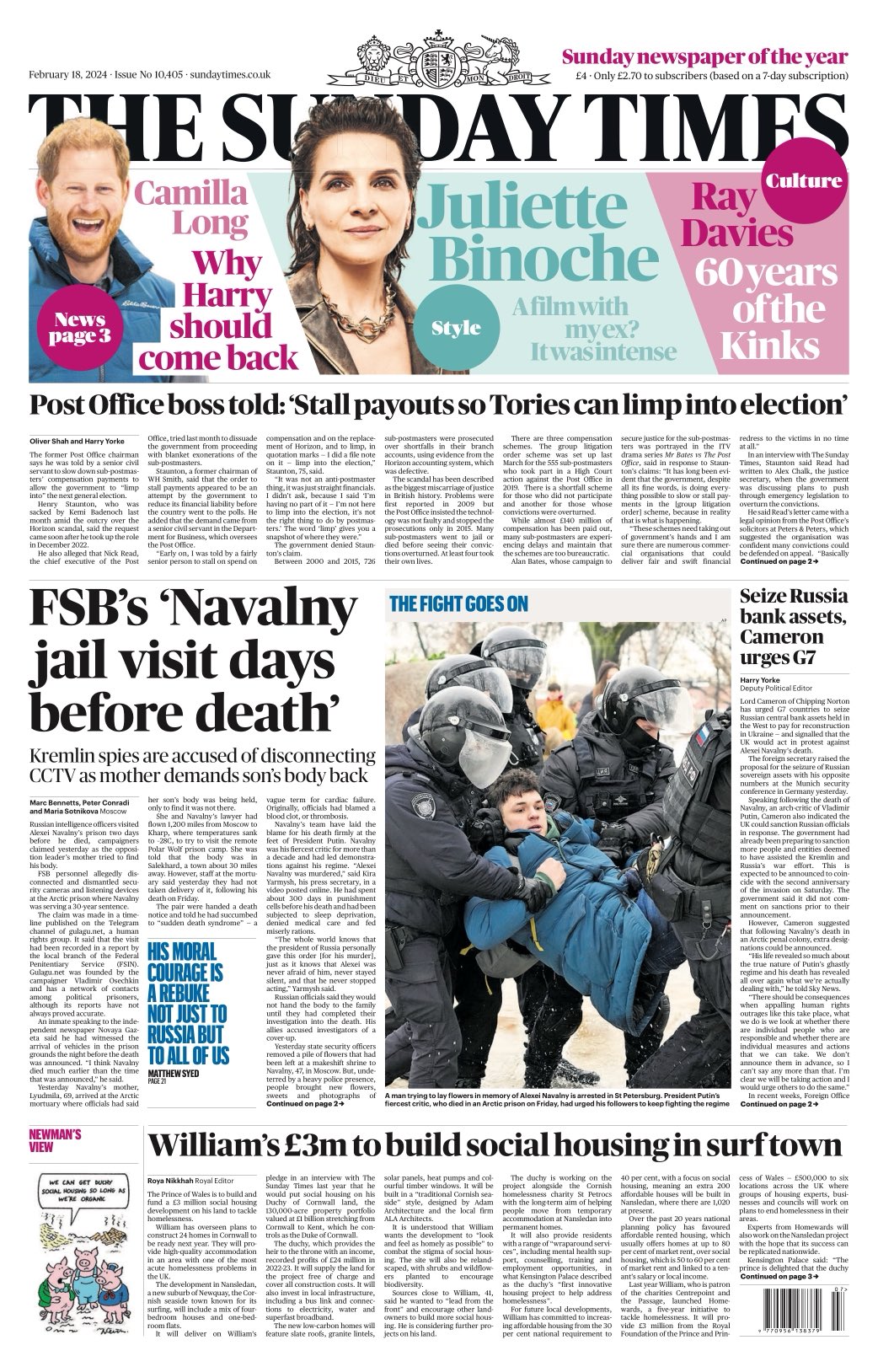 The Sunday Times reveals a visit by FSB intelligence officers to imprisoned opposition leader Alexei Navalny prior to his death, as per campaigners.