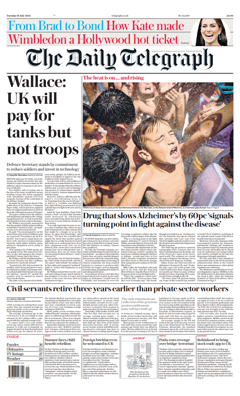 The Daily Express emphasises that the Alzheimer’s drug, donanmab, described as a “turning point” by scientists, slows the disease’s progression.