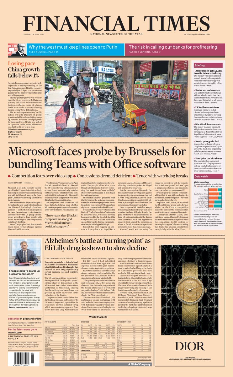 The Financial Times reveals an EU investigation into Microsoft for potentially anti-competitive practices with its Teams video conferencing service and Office software.