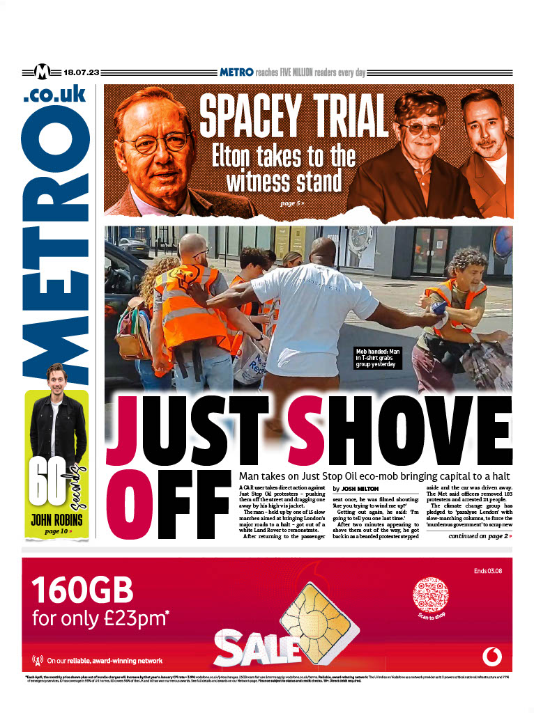 The Metro reports a Londoner’s personal stand against Just Stop Oil protesters by forcibly clearing a street blockage.