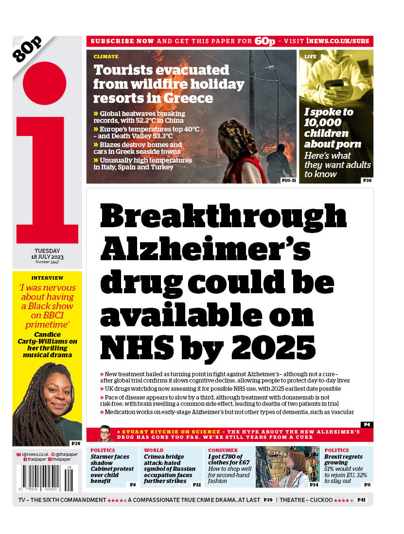 The i paper reports that an Alzheimer’s-slowing drug could be accessible via the NHS by 2025.