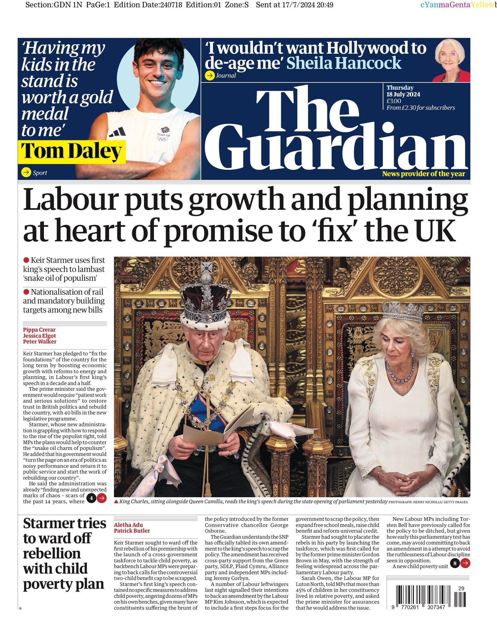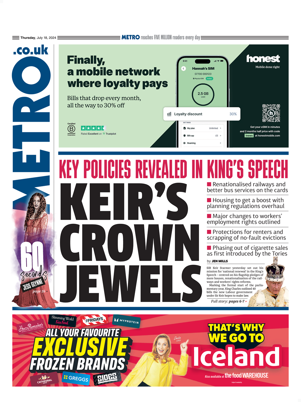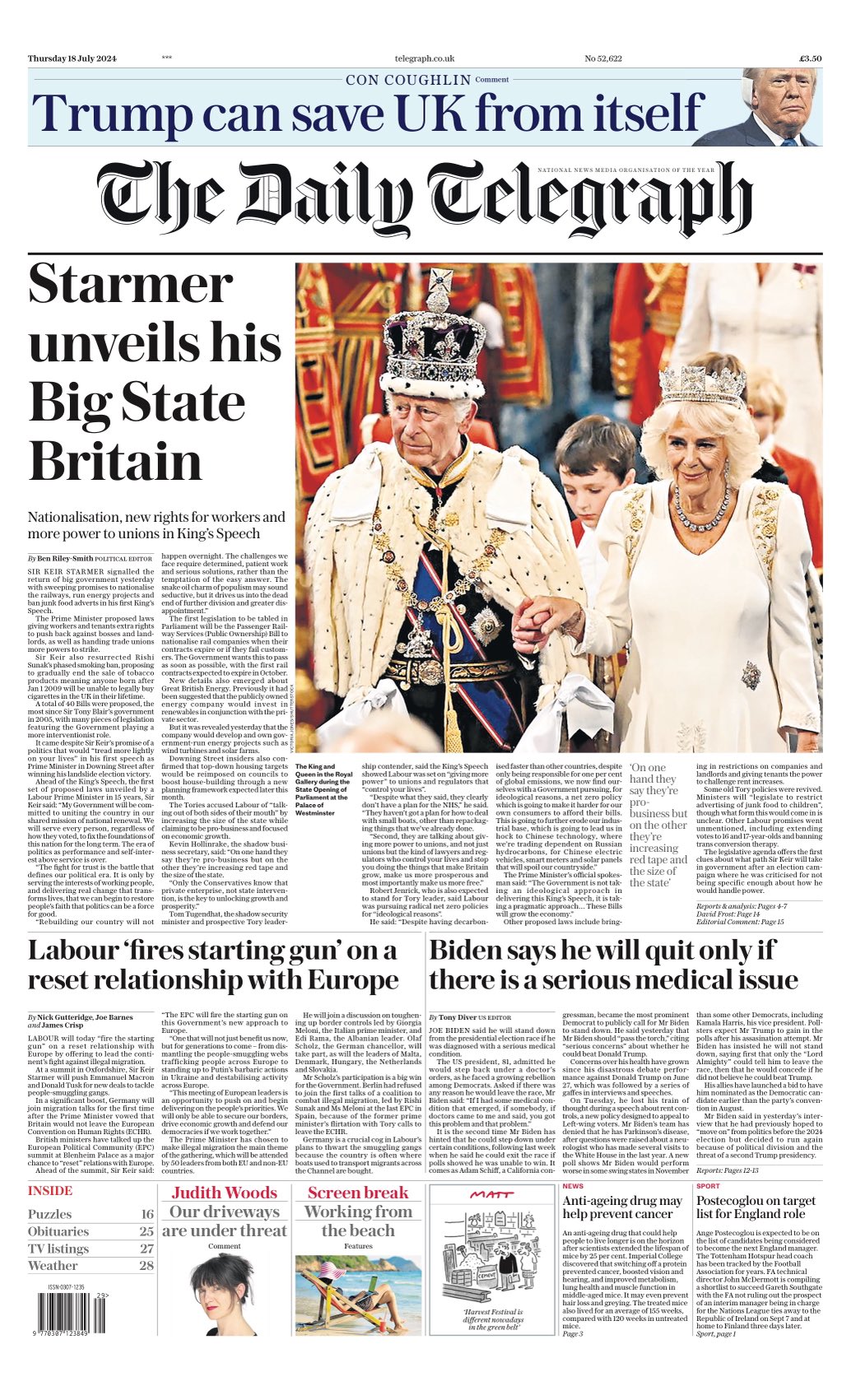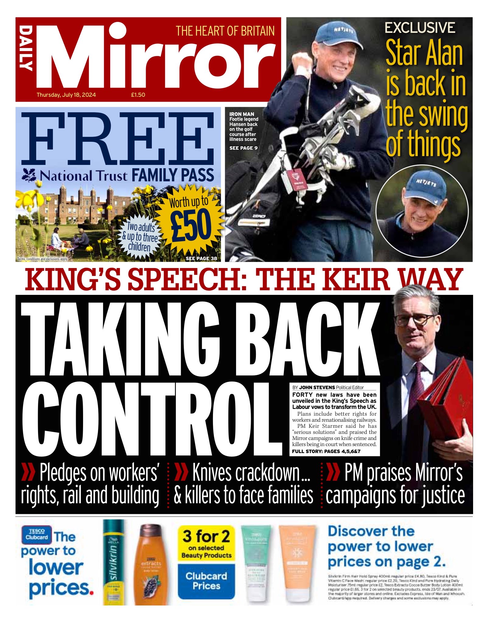 Daily Mirror Front Page 18th of July 2024