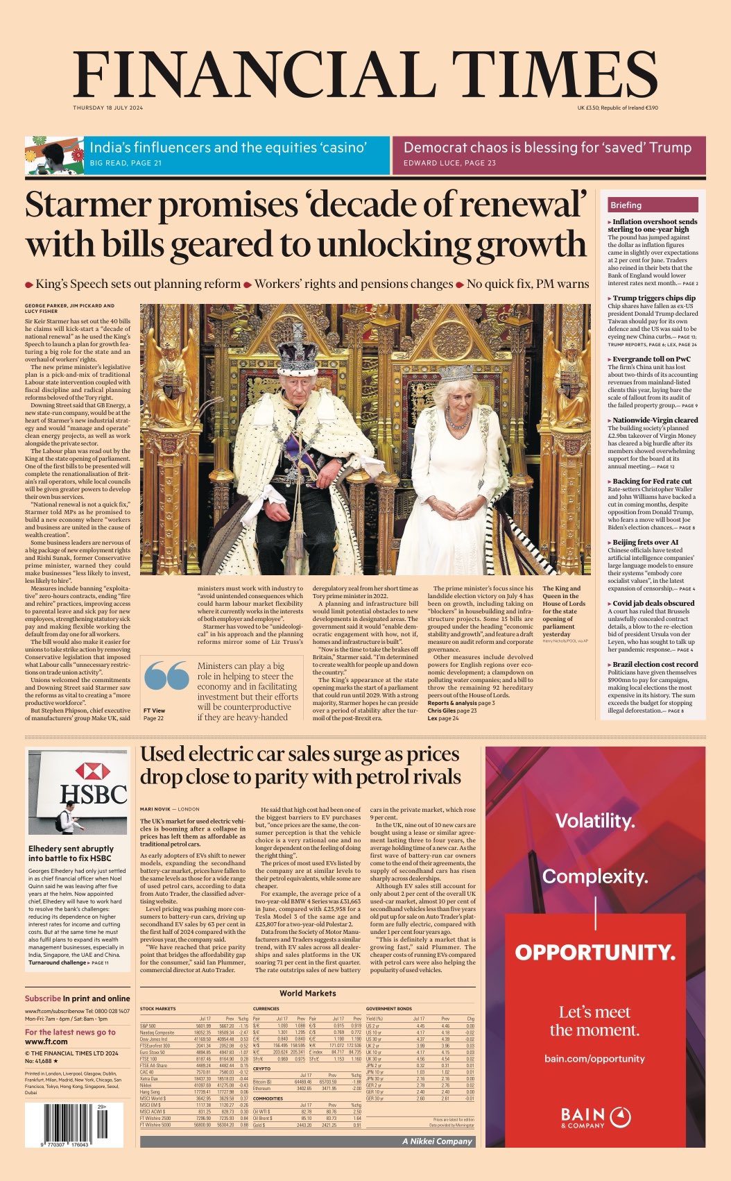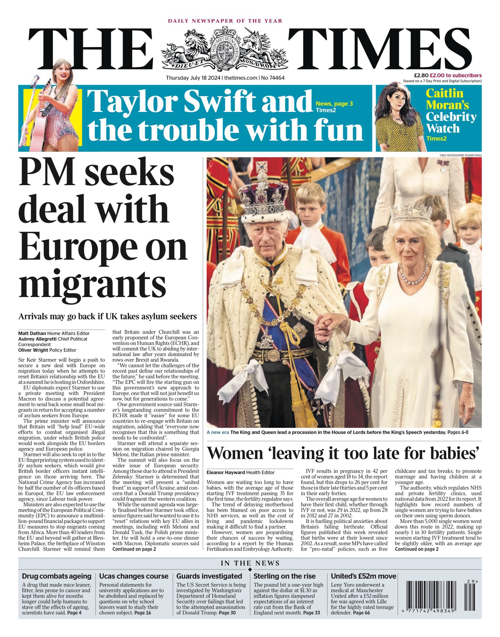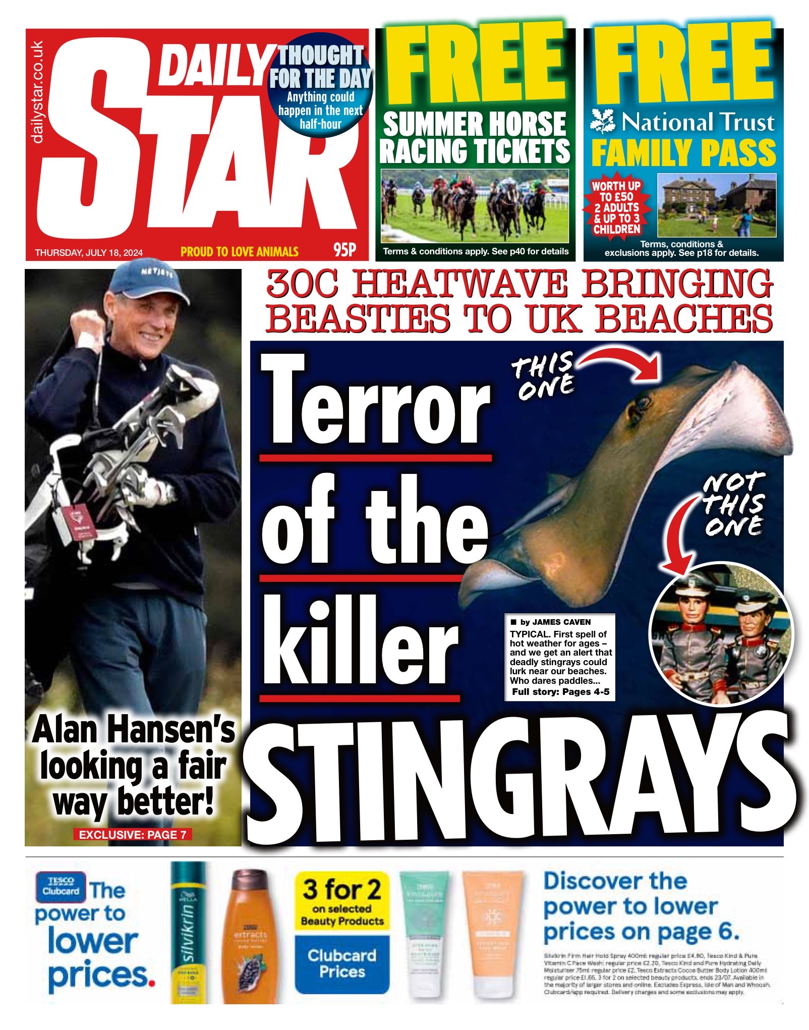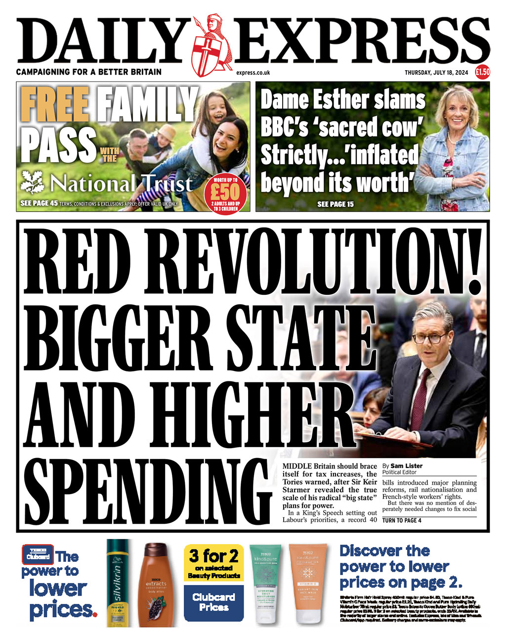 Daily Mirror Front Page 18th of July 2024