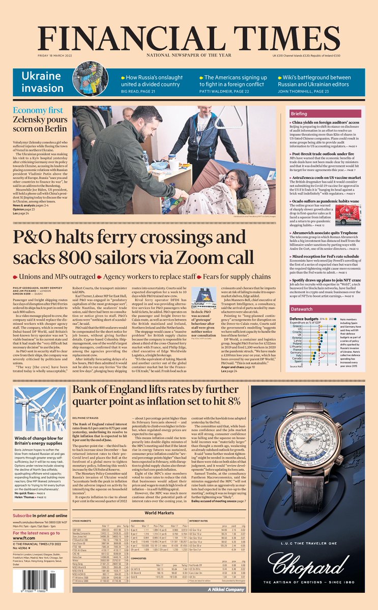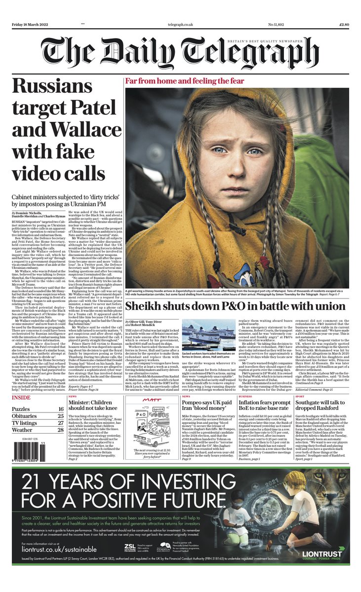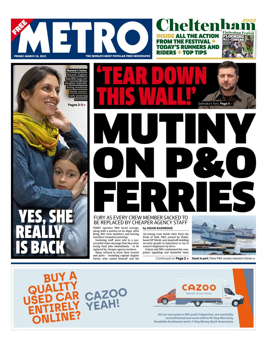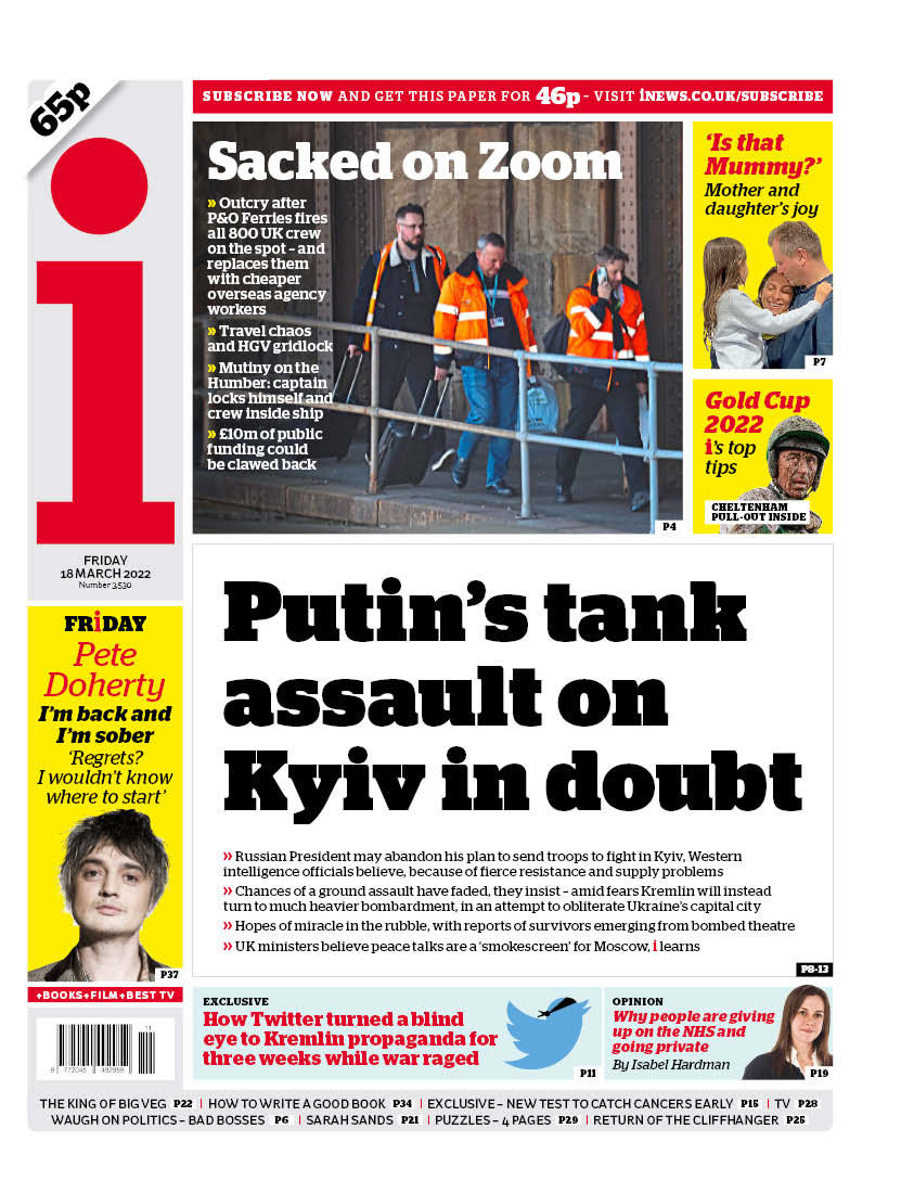 Russia has been accused by the UK, US, France Albania, Ireland and Norway of war crimes in Ukraine, the Guardian reports.The paper also claimed France believes Russian President Vladimir Putin is online pretending to be interested in negotiating a peace deal. The front page also shares a heart-warming family picture of Nazanin Zaghari-Ratcliffe being reunited with her husband Richard and daughter Gabriella.