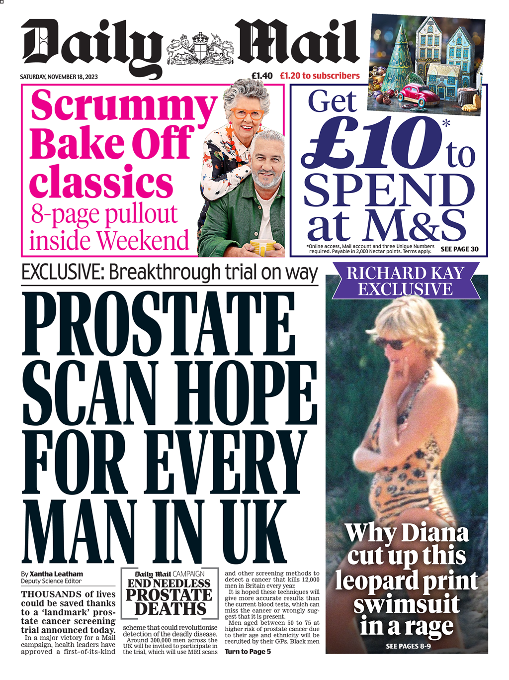 The Daily Mail highlights a groundbreaking prostate cancer screening trial that could potentially save thousands of lives.