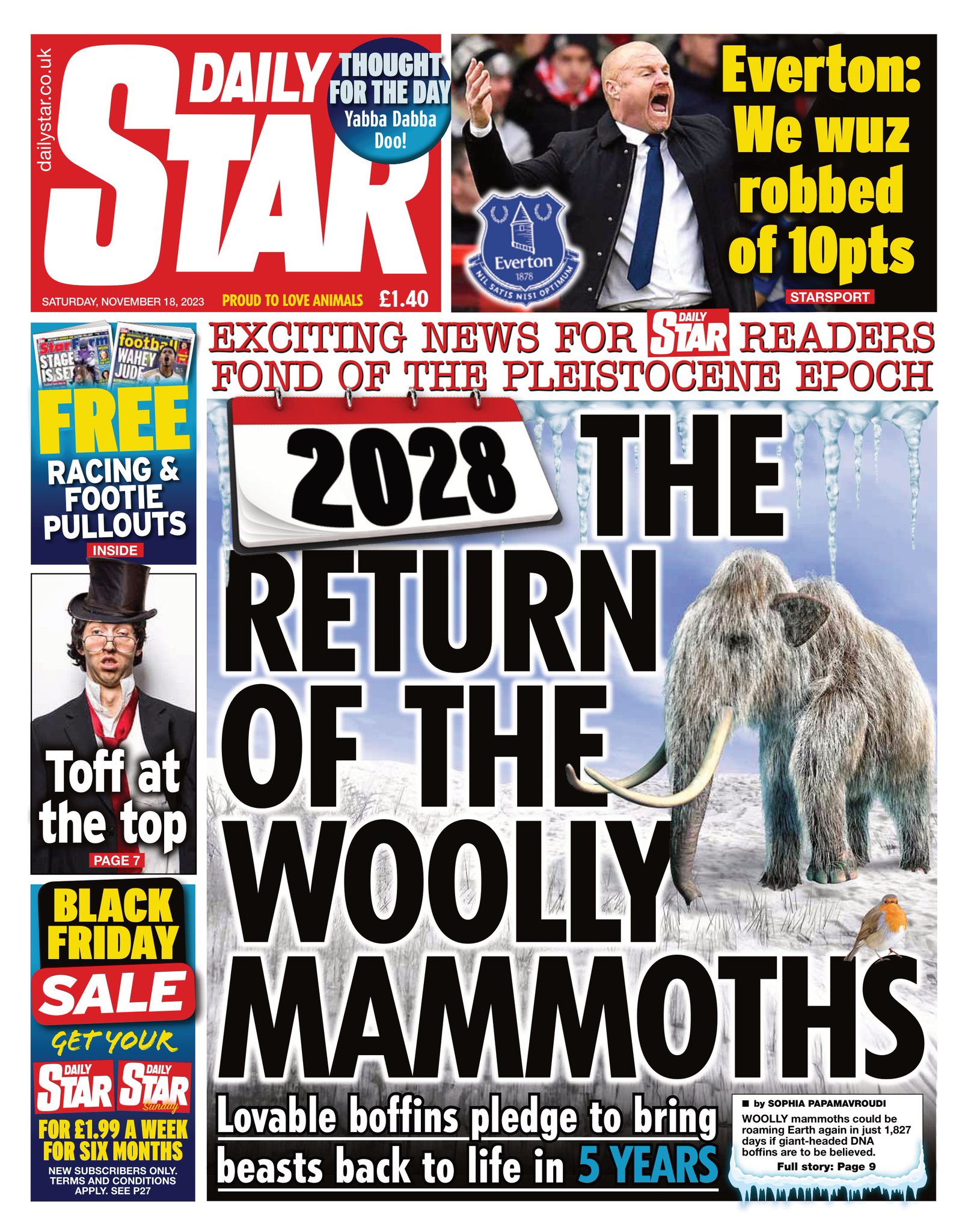 The Daily Star reports on scientists’ pledge to resurrect woolly mammoths within five years.