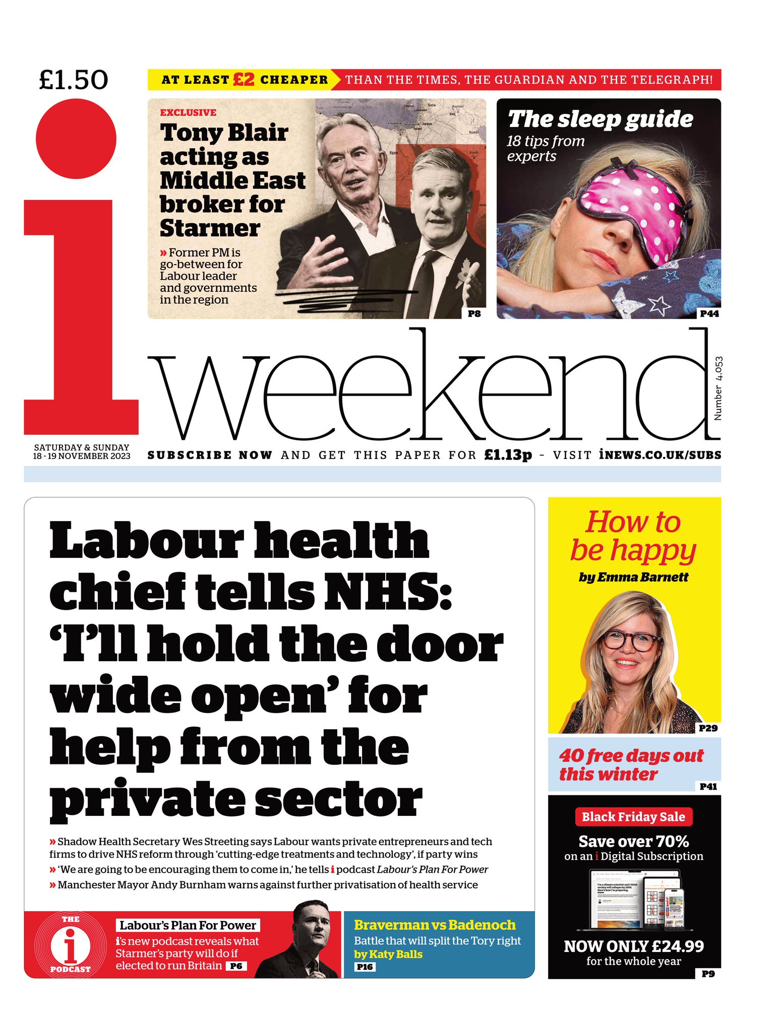 The i reveals Labour’s call for private sector’s aid in NHS, as per Wes Streeting.