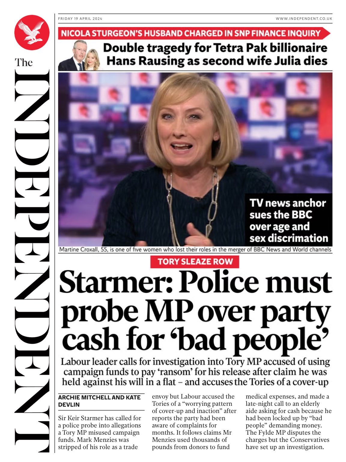 The Daily Mail reports on the charges faced by Peter Murrell, Nicola Sturgeon’s spouse.