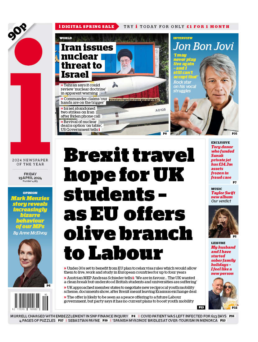 The i reveals an EU plan allowing under-30 Britons to work or study in Europe for four years.