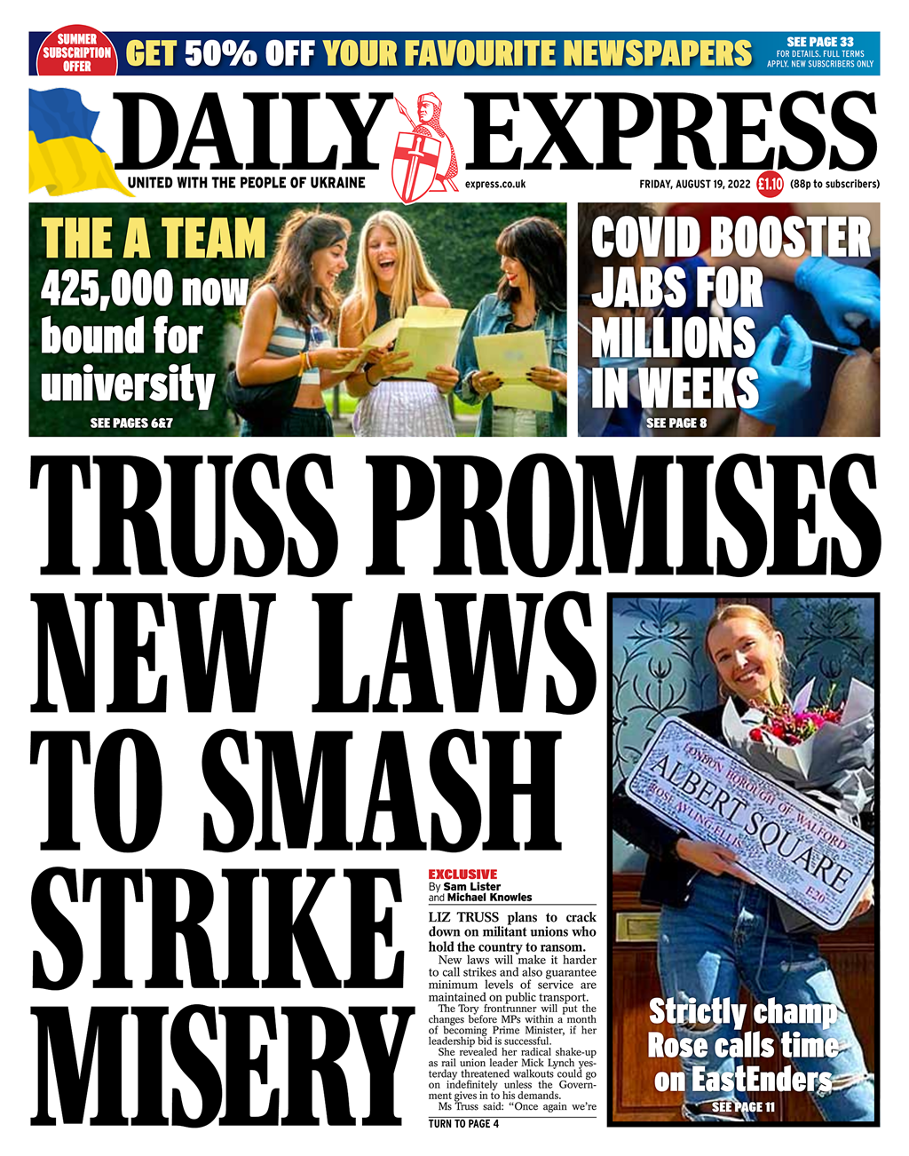 Following more industrial action on Thursday, Liz Truss wants to crack down on what she calls “militant unions” if she becomes Number 10.