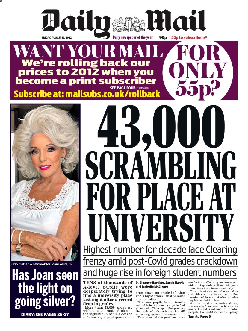 Following today’s results day, more than 43,000 school-leavers are expected to scramble for university places, according to the Daily Mail.