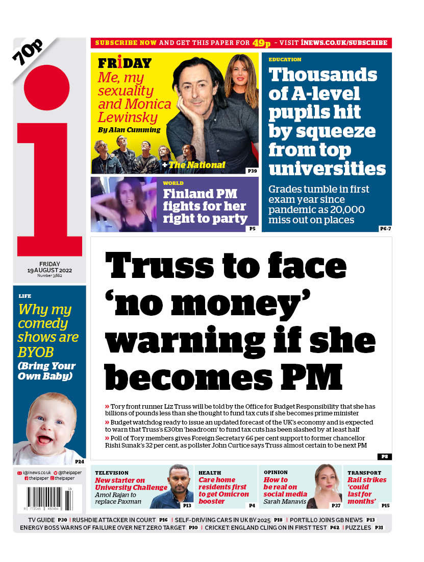 Should Liz Truss become prime minister, the Office for Budget Responsibility will warn her that the public purse will be significantly smaller than she thought.