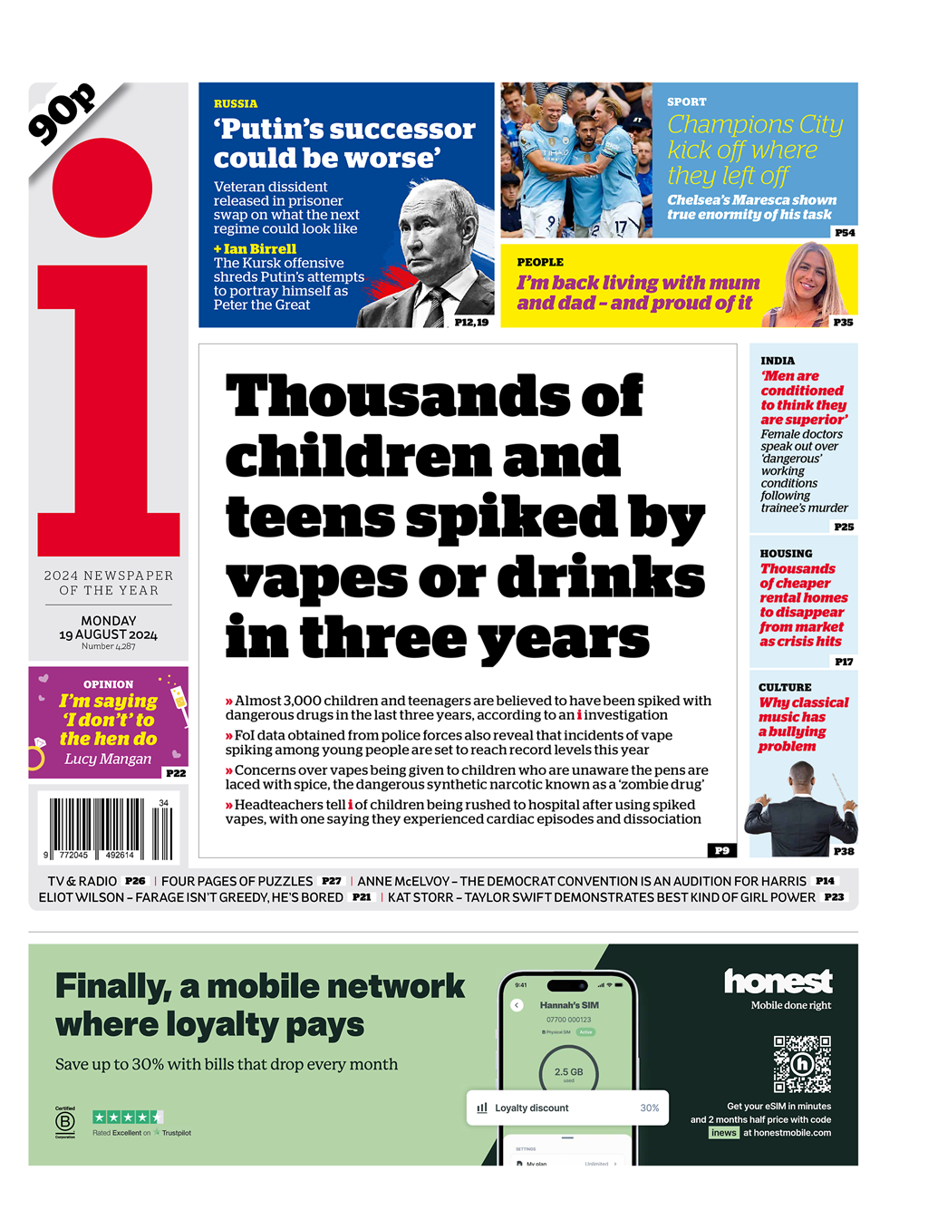 According to the i newspaper, almost 3,000 children and teenagers have reportedly been spiked with dangerous drugs in the past three years.