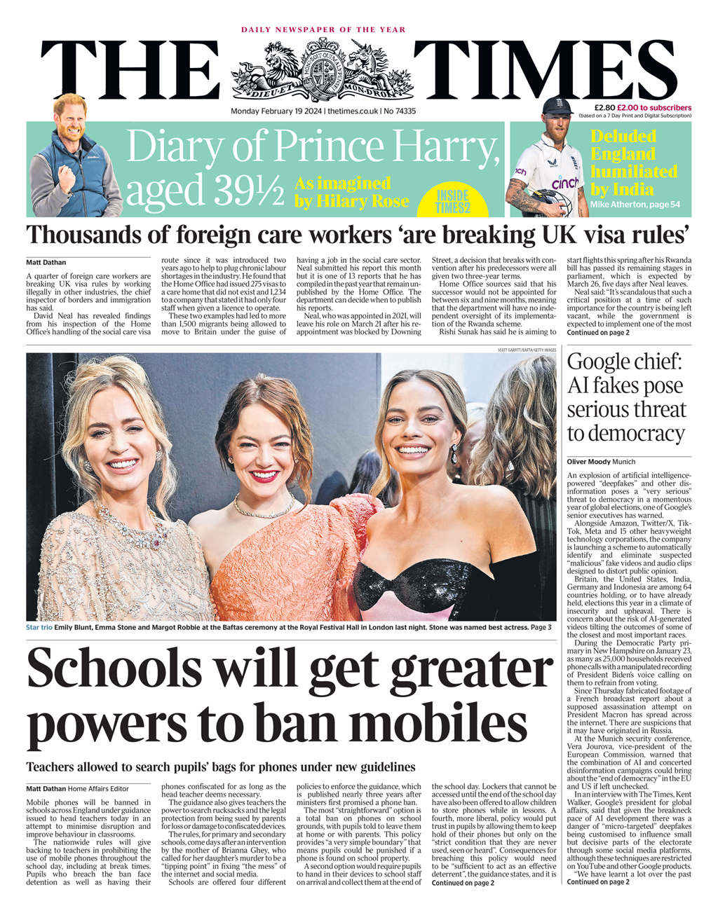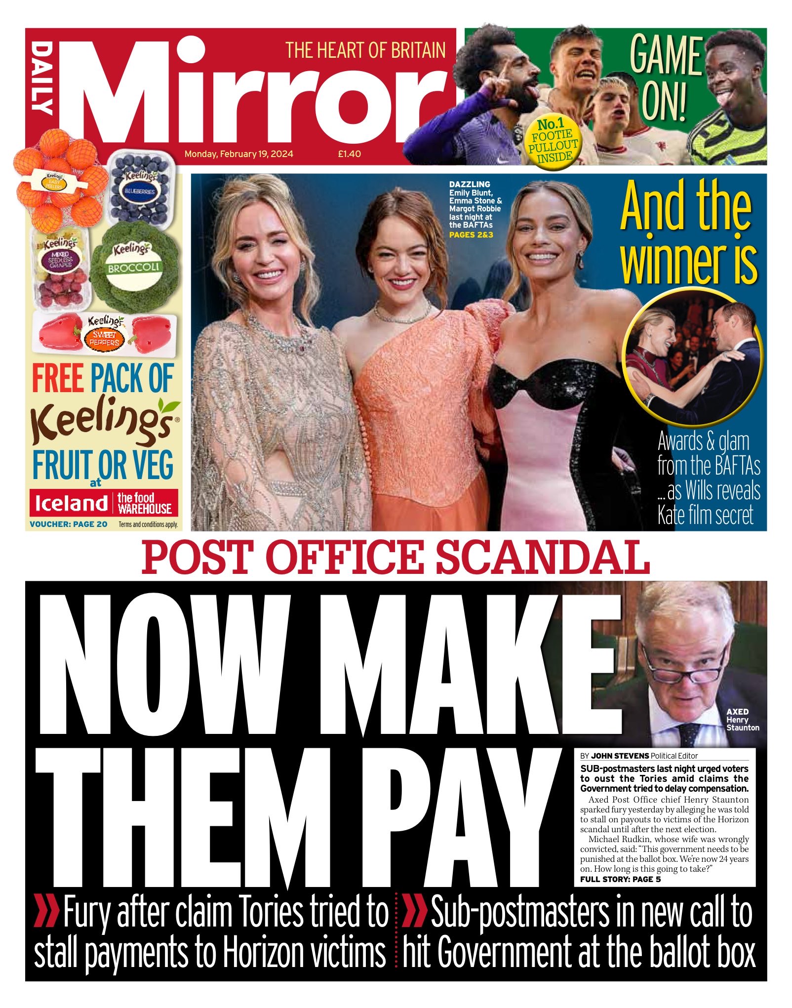 Daily Express Front Page 19th of February 2024