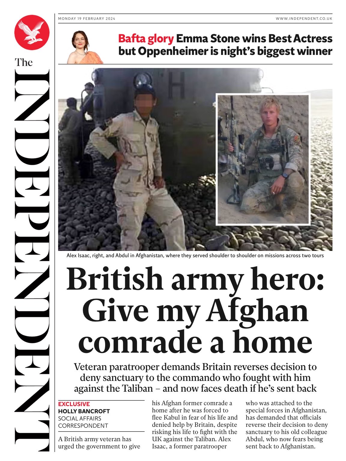 A UK army veteran’s plea for his former Afghan associate’s resettlement in Britain is highlighted in The Independent.