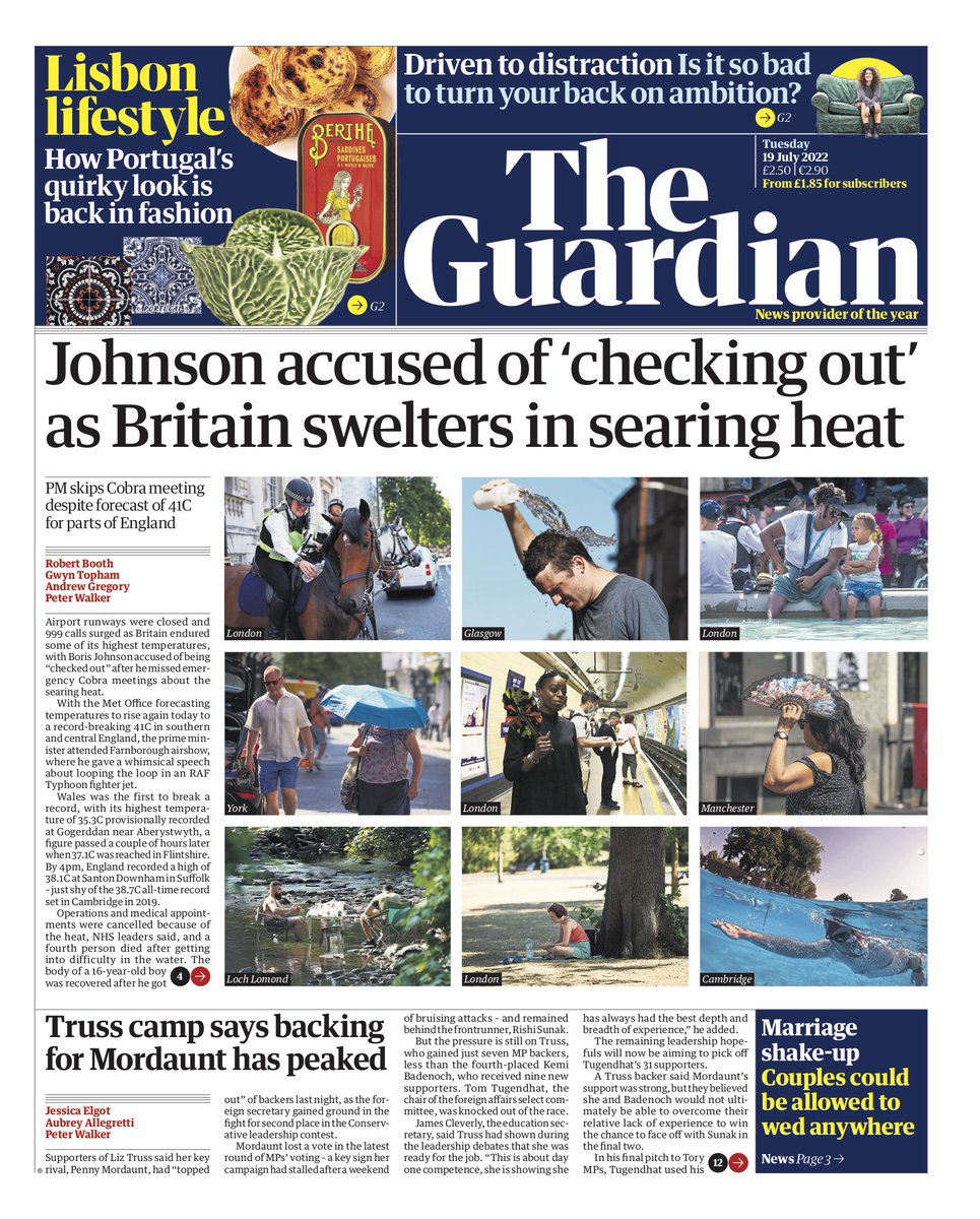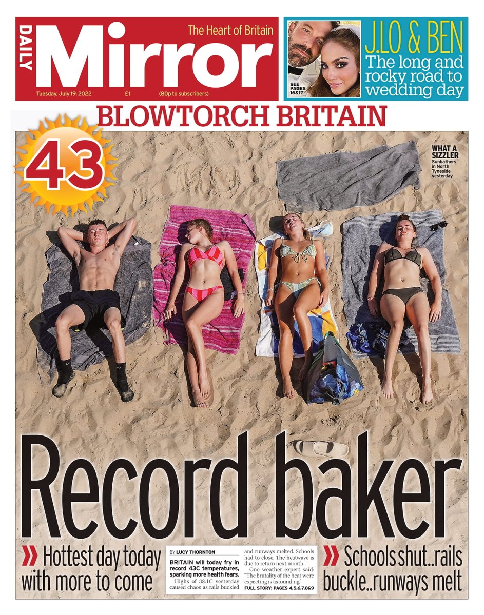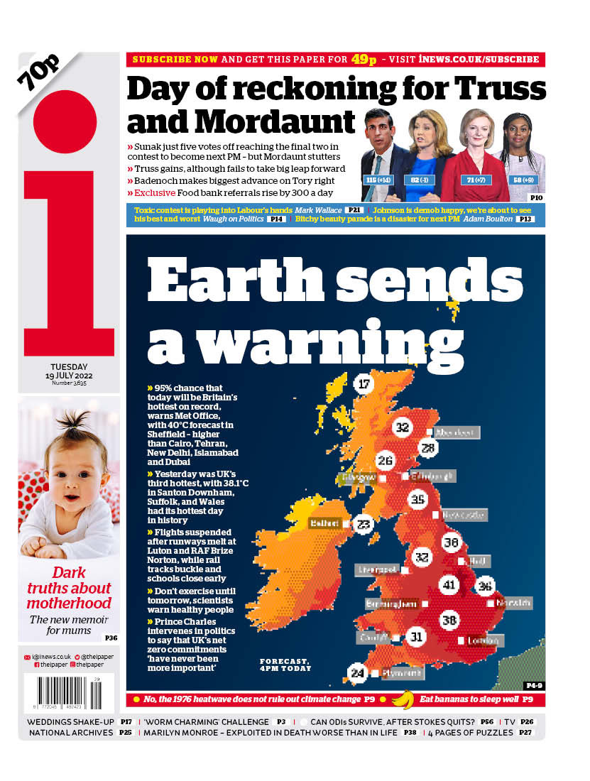 On the Telegraph’s front, it is speculated that the UK has yet to see its best or worst temperatures – with 43C possible.