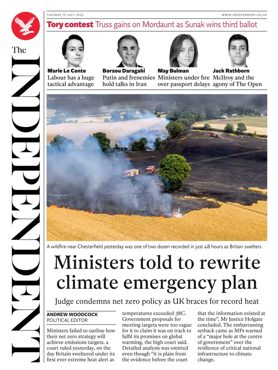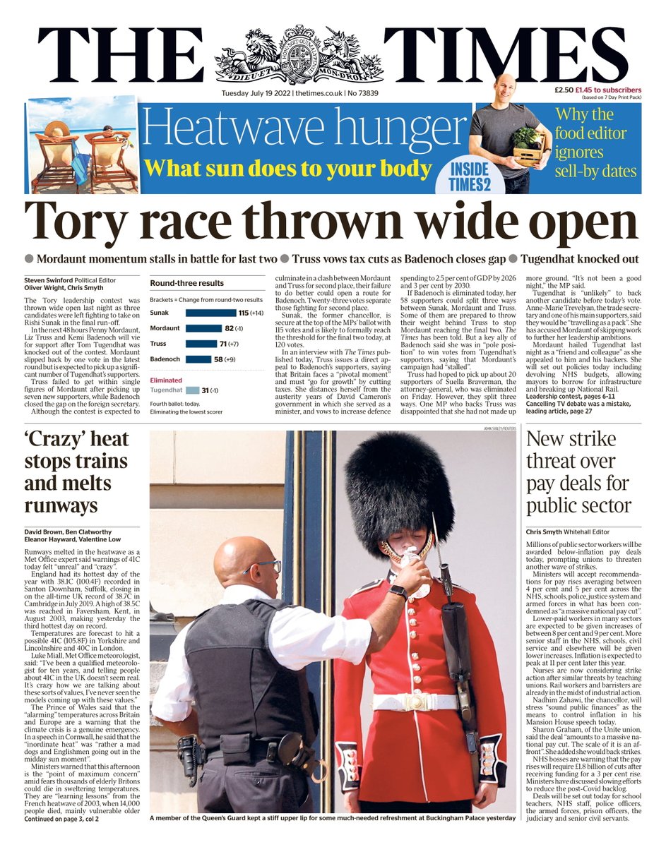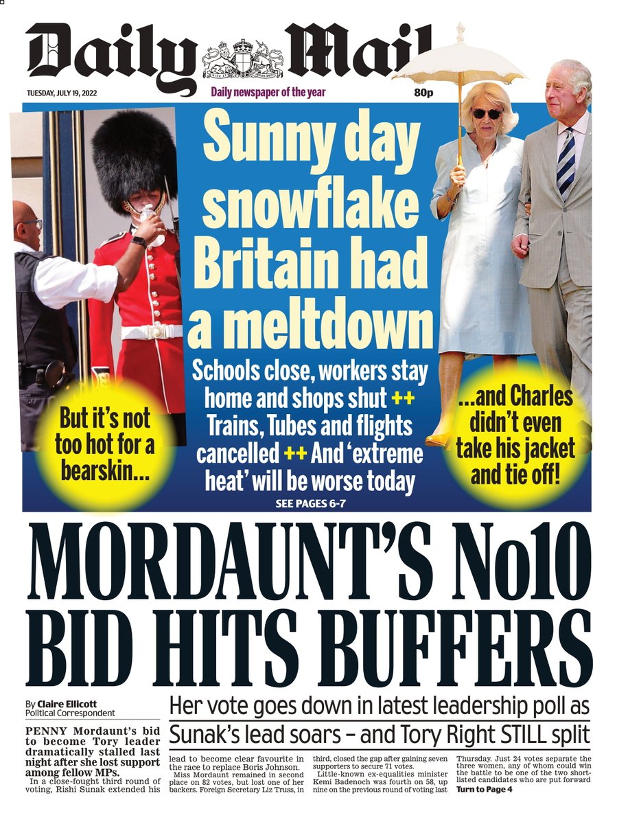 On the Telegraph’s front, it is speculated that the UK has yet to see its best or worst temperatures – with 43C possible.
