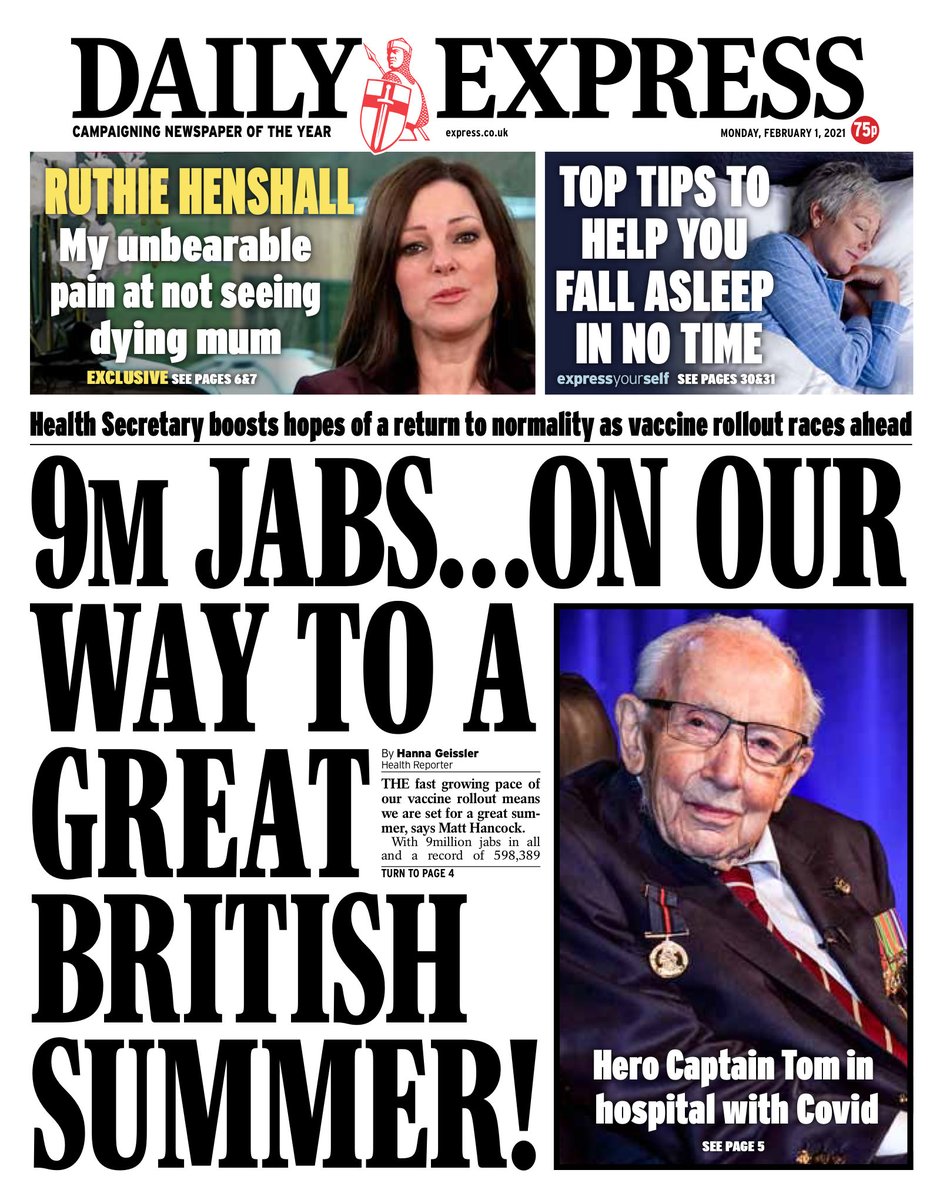 The Daily Express has hopes for a “great British summer” after the news that nine million people have had their first dose of the COVID-19 vaccine.