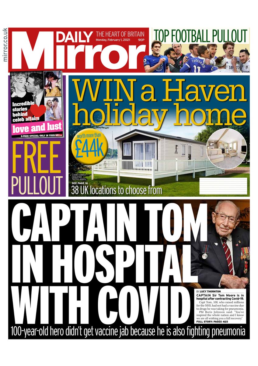 Captain Sir Tom Moore, the NHS fundraiser in hospital with COVID-19, was not able to get a vaccine because he was suffering from pneumonia, according to the Daily Mirror.